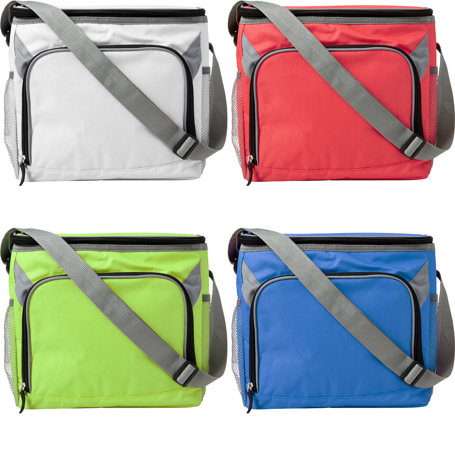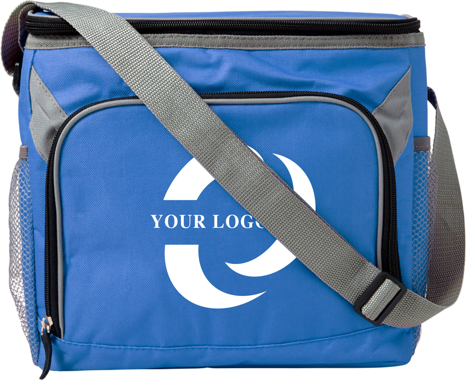 Kühltasche aus Polyester (600D), mit zwei RV-Taschen, zwei Netzfächern und verstellbarem Schultergurt.