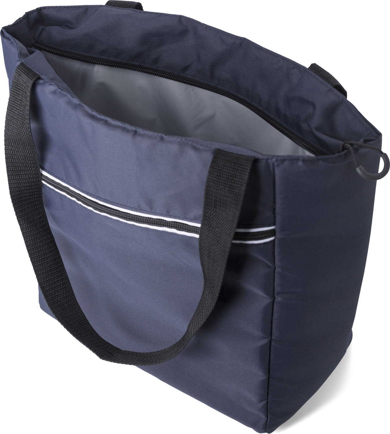 Kühltasche aus Pongee (75D) mit einer PEVA-Beschichtung im Inneren und langen Tragegriffen. Mit einem großen Hauptfach und einer Vordertasche mit Reißverschluss.