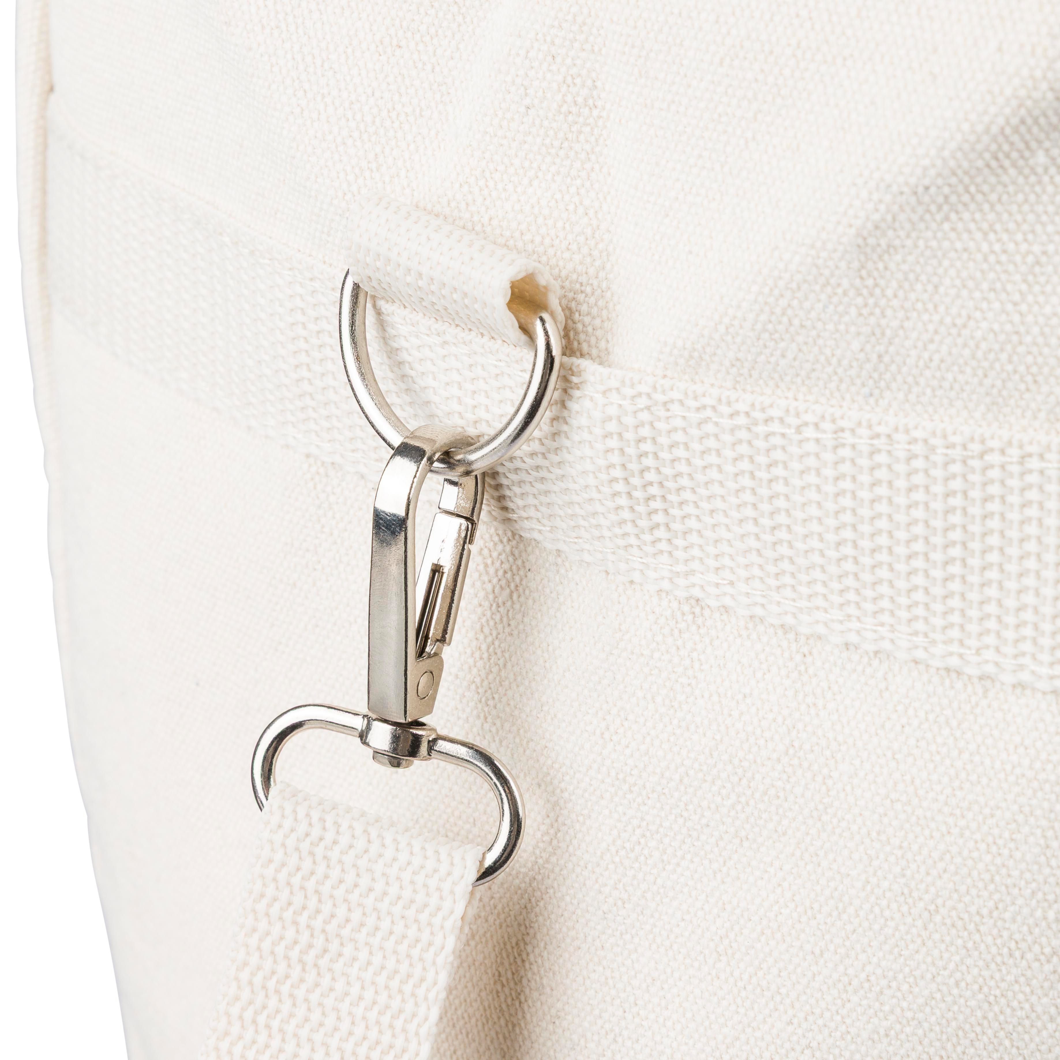 Kühltasche aus recyceltem Polycotton (330 g / m²) mit 23 Liter Fassungsvermögen. Mit zwei Tragegriffen (3,5 × 60 cm), einem verstellbaren Schultergurt (2,5 × 110 cm) mit Metallschnalle und passendem Gurtband. Isoliert mit Aluminiumfolie. Mit rPET-Etikett außen und einem Etikett innen.