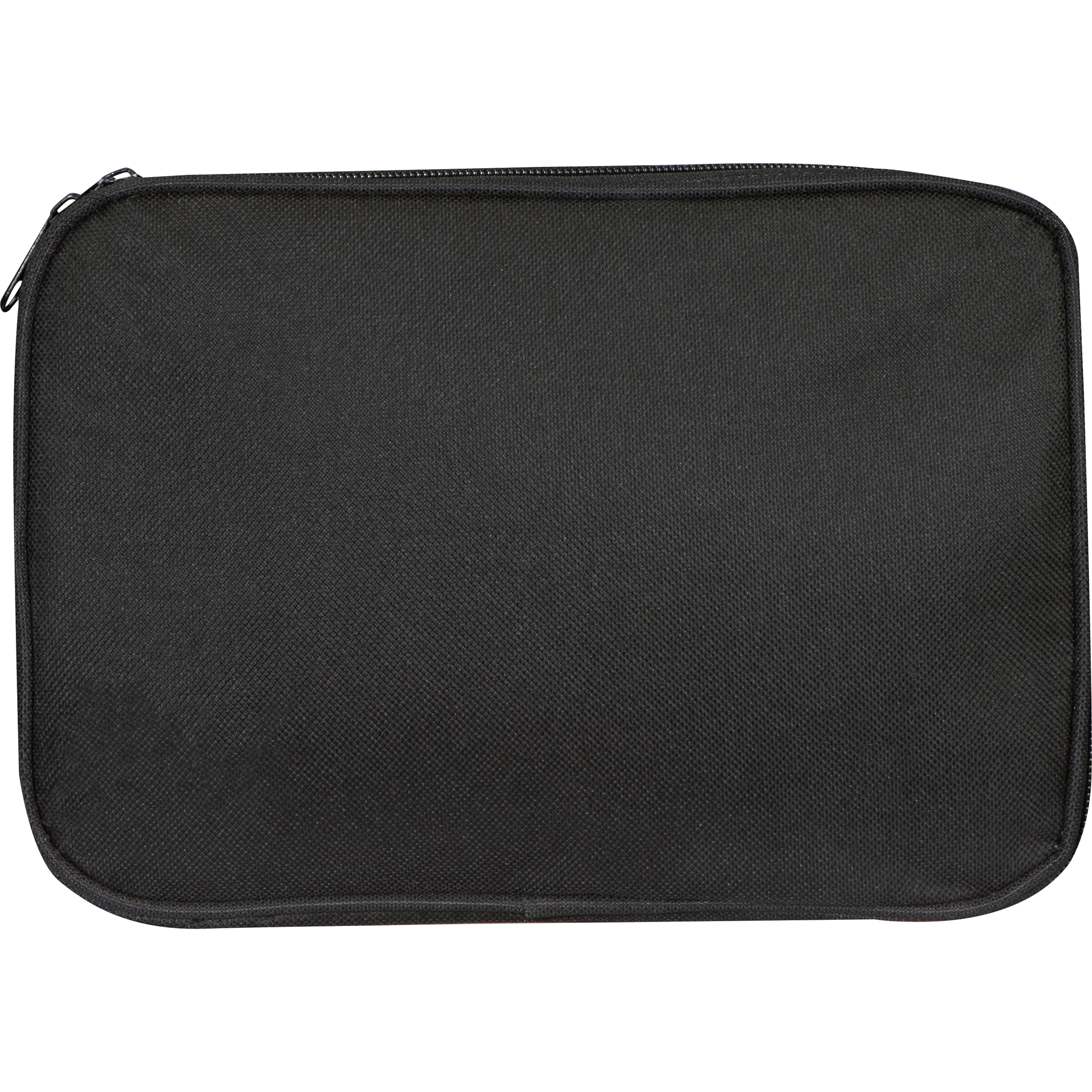 Kühltasche aus 600D Polyester mit abgesetztem Boden aus Kork, Vorfach und Trageriemen, passend 6 Getränkedosen bzw. Flaschen zu je 0,5 Liter. Ihre Werbung wird auf das Vorfach gedruckt.