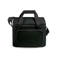 Kühlbeutel aus rPET (600D) Polyester mit PU-Beschichtung für Wasserabweisung. Mit 2 mm PE-Polsterung und Aluminiumfolienfutter zur Isolierung. Mit Fronttasche mit Reißverschluss, oberem Fach, seitlicher Netztasche und Klebeverschluss....