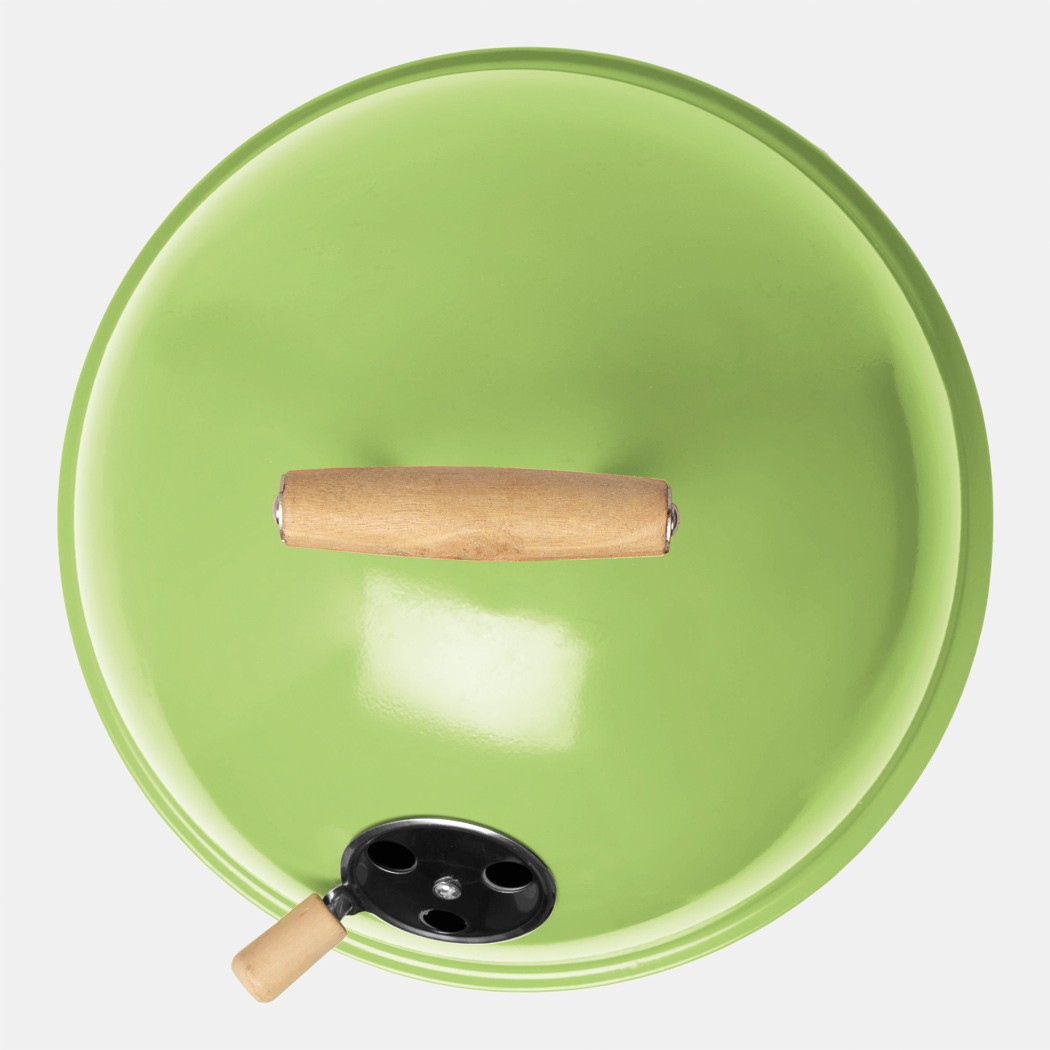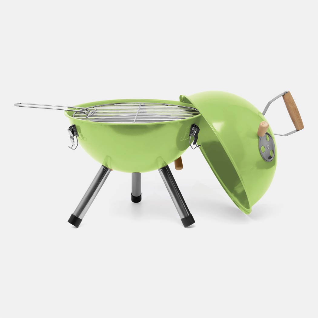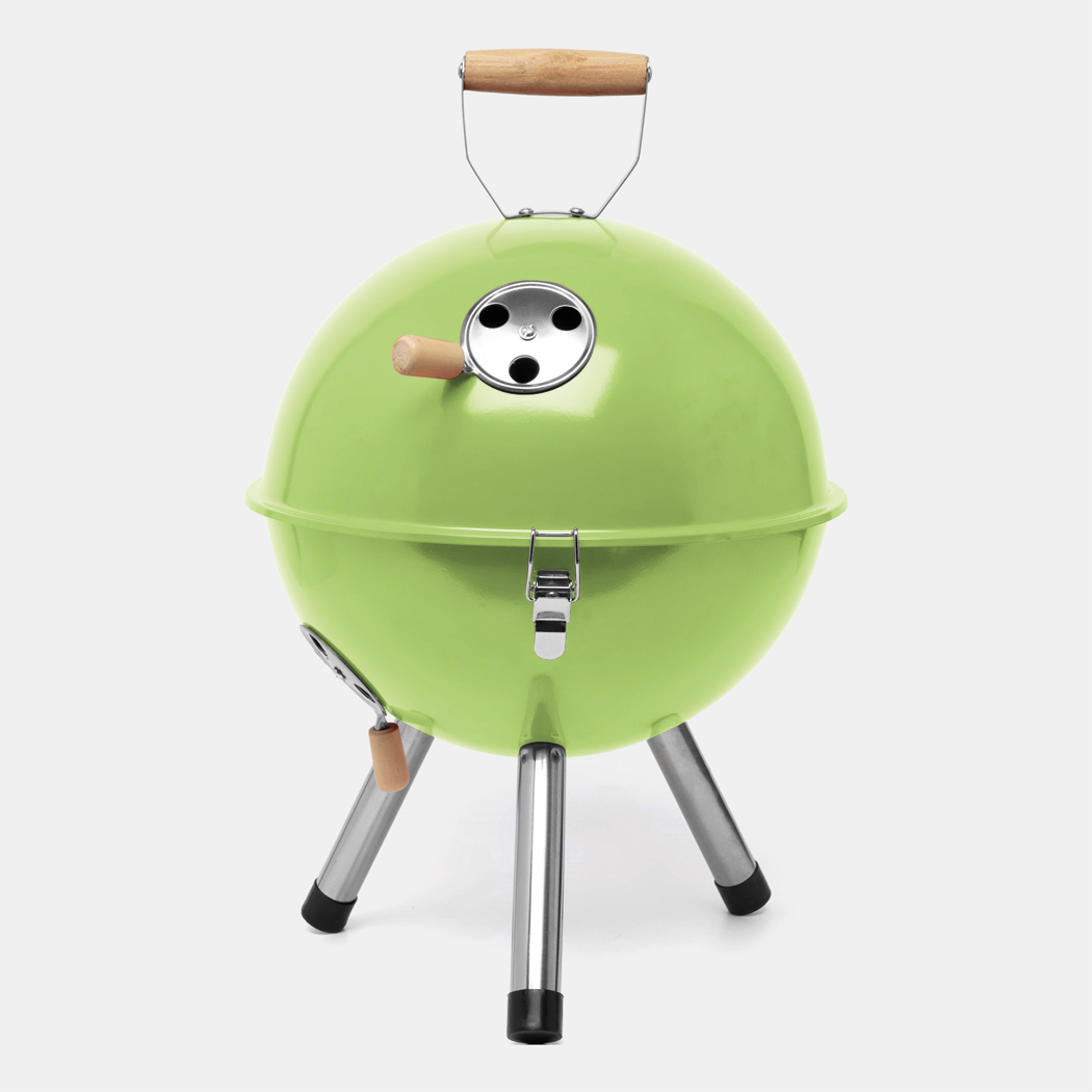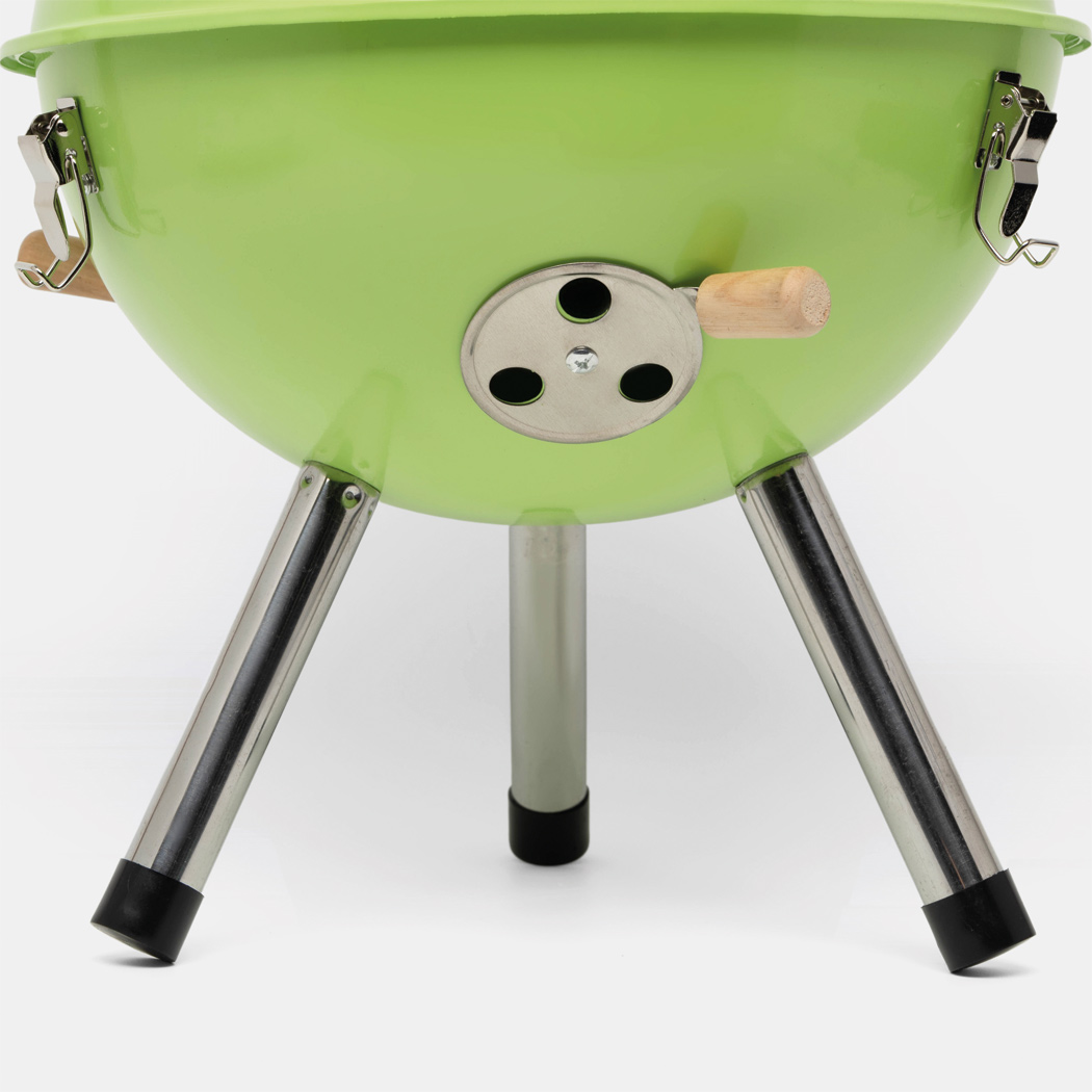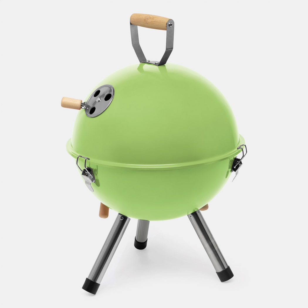 Kugelgrill COOKOUT: Metall-Korpus mit 2 Belüftungsfenstern, herausnehmbare Schale mit Luftlöchern für Kohle, 1 herausnehmbarer Grillrost Ø ca. 29 cm, Garhaube mit Belüftungsfenster und Holzgriff, 3 Schnappverschlüsse zum Befestigen der Haube am Metall-Korpus, 3 Metallfüße mit Kunststoffkappen, Lieferung in Geschenkbox