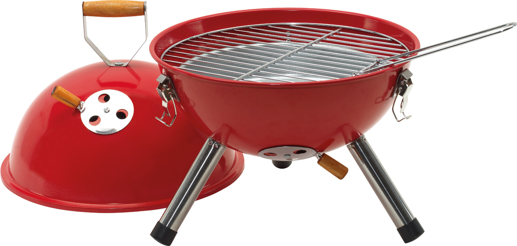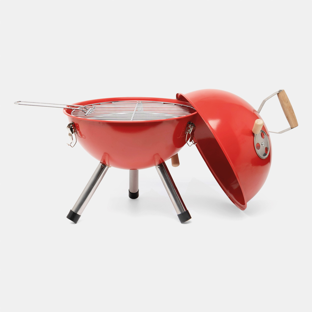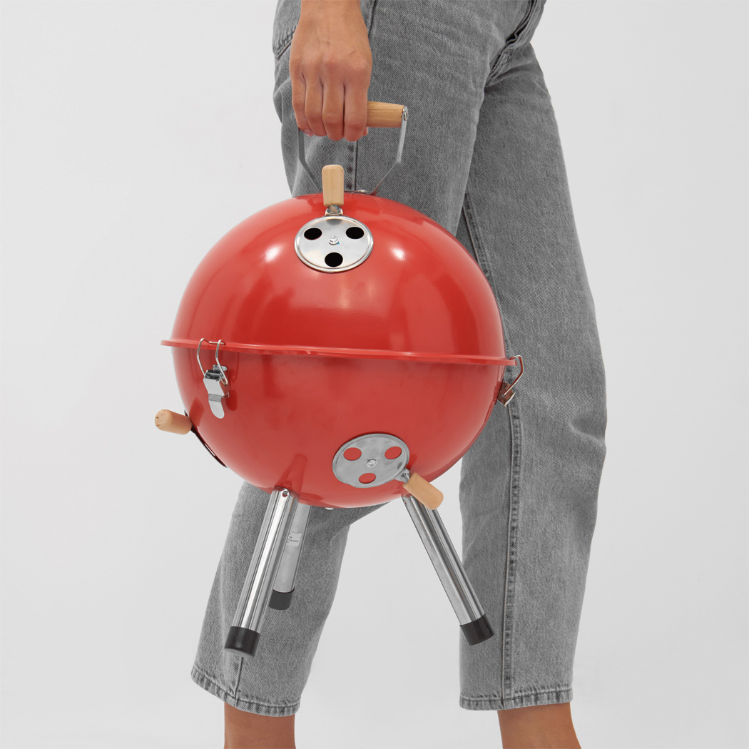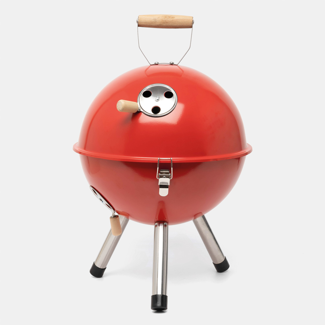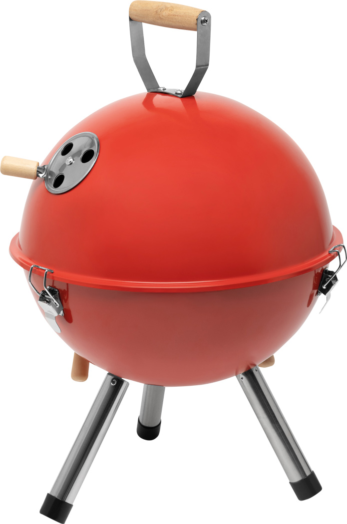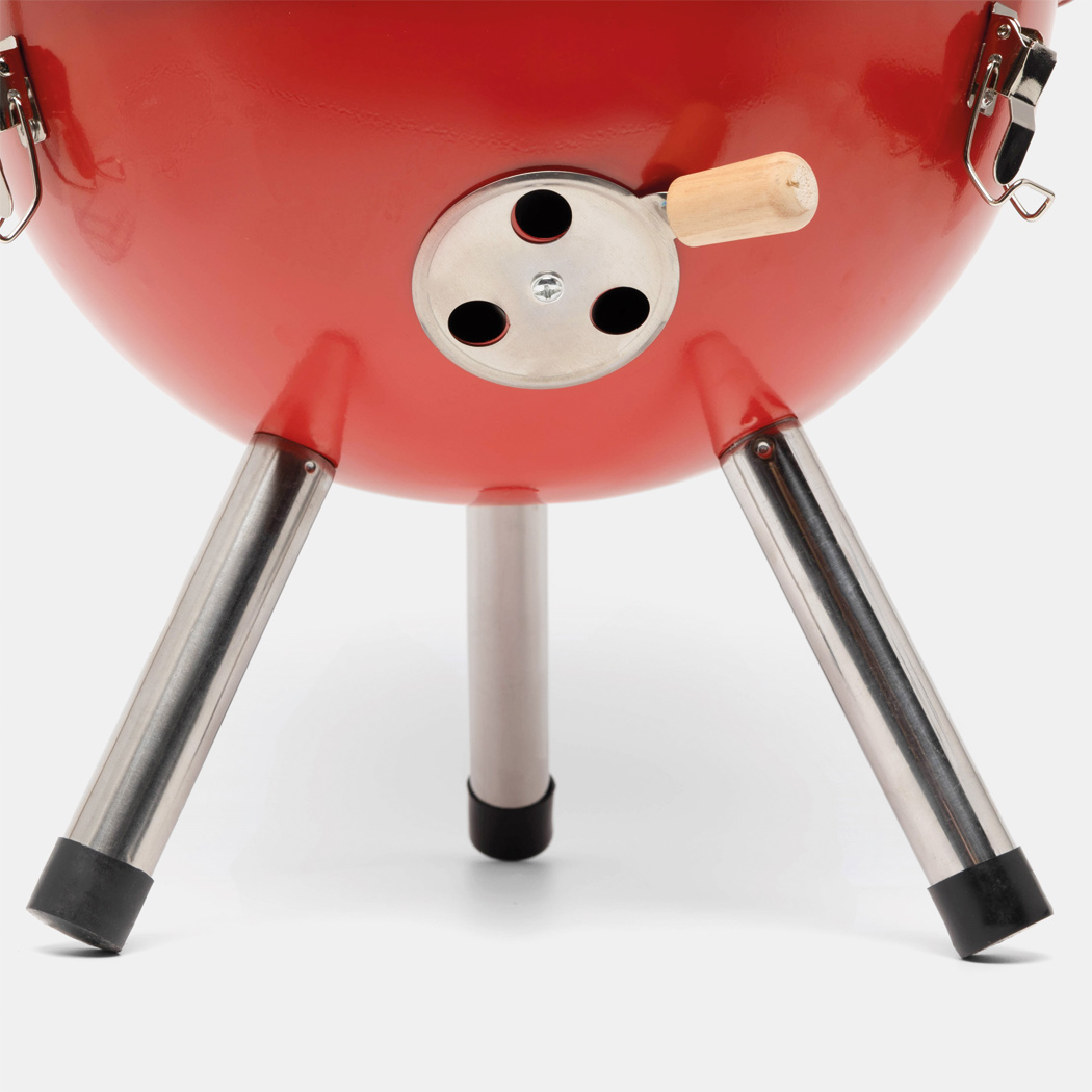 Kugelgrill COOKOUT: Metall-Korpus mit 2 Belüftungsfenstern, herausnehmbare Schale mit Luftlöchern für Kohle, 1 herausnehmbarer Grillrost Ø ca. 29 cm, Garhaube mit Belüftungsfenster und Holzgriff, 3 Schnappverschlüsse zum Befestigen der Haube am Metall-Korpus, 3 Metallfüße mit Kunststoffkappen, Lieferung in Geschenkbox