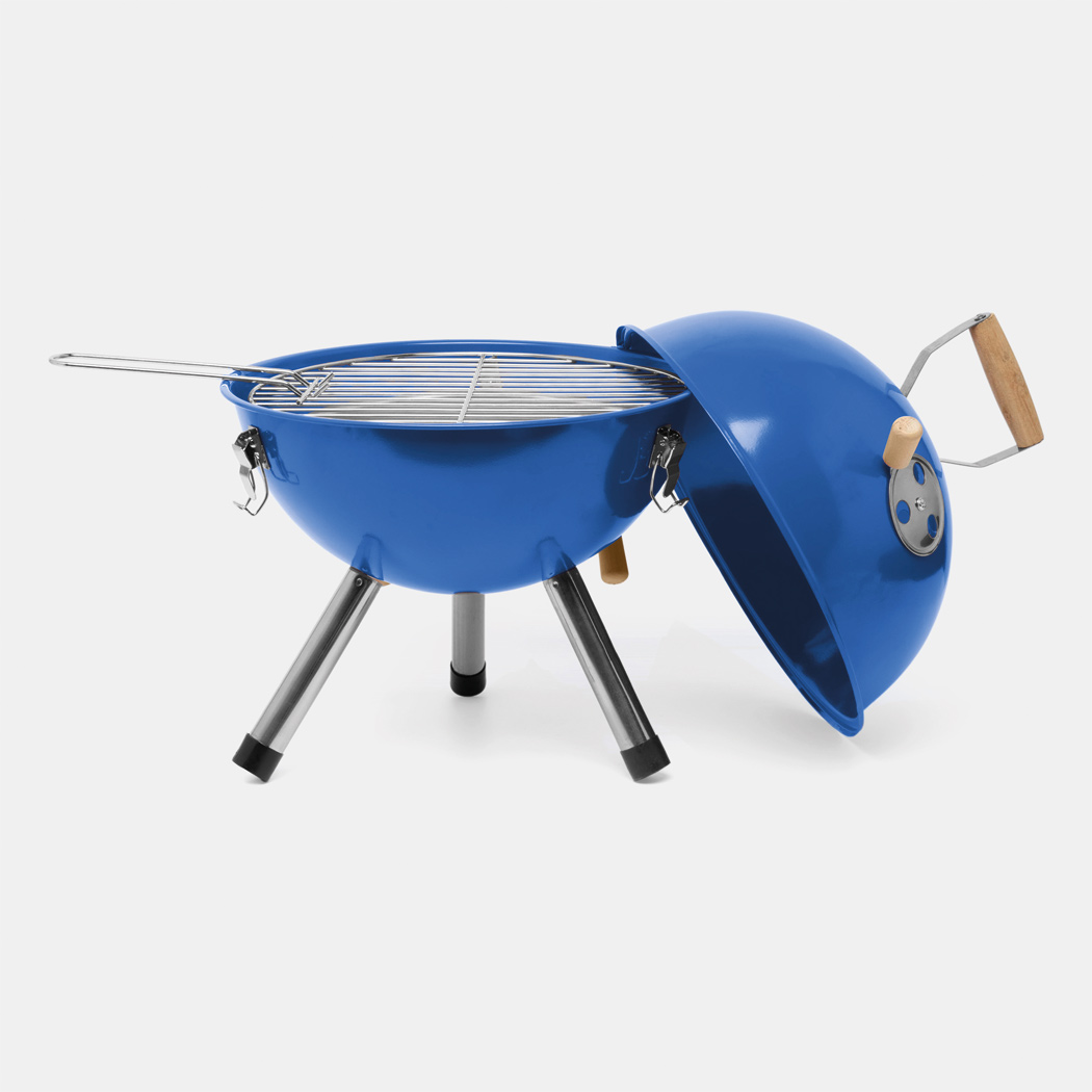Kugelgrill COOKOUT: Metall-Korpus mit 2 Belüftungsfenstern, herausnehmbare Schale mit Luftlöchern für Kohle, 1 herausnehmbarer Grillrost Ø ca. 29 cm, Garhaube mit Belüftungsfenster und Holzgriff, 3 Schnappverschlüsse zum Befestigen der Haube am Metall-Korpus, 3 Metallfüße mit Kunststoffkappen, Lieferung in Geschenkbox