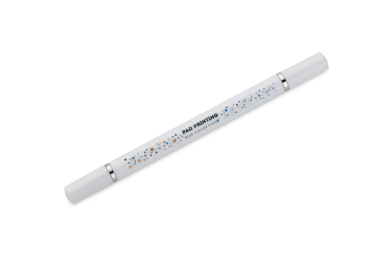 Der TWINO 2-in-1-Kugelschreiber vereint einen klassischen Kugelschreiber und einen Füllfederhalter in einem Gehäuse und ist damit ein praktisches Werkzeug für den täglichen Gebrauch. Auf der einen Seite befindet sich ein Kugelschreiber mit Stopper und einer Mine mit 1,0 mm Schreibstärke, auf der anderen Seite ein Füllfederhalter, der nicht angespitzt werden muss. Der Schaft ist aus satiniertem Kunststoff gefertigt und mit silbernen Ringen verziert, die sein edles Aussehen unterstreichen. TWINO ist leicht, handlich und komfortabel, ideal für das Büro, die Schule oder als funktionales Werbegeschenk.