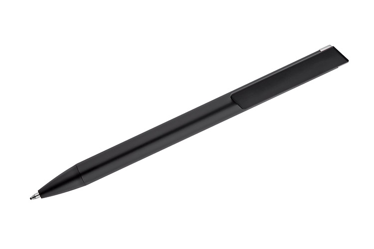 ALI ist ein einzigartiger Stift, der das Markieren in der ähnliche Farbe zu der Stiftspitze und eine völlig überraschende Gravur in zwei Farben - ähnlich der Stiftspitze und weiß (Aluminium) ermöglicht. Der schwarze Metallkörper und der schwarze Finish sind der perfekte Hintergrund für farbige Gravuren. Automatischer Kugelschreiber Ersatzmine des Typs X20 mit einer Dicke von 1.0 mm in blau.