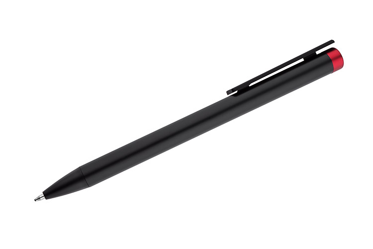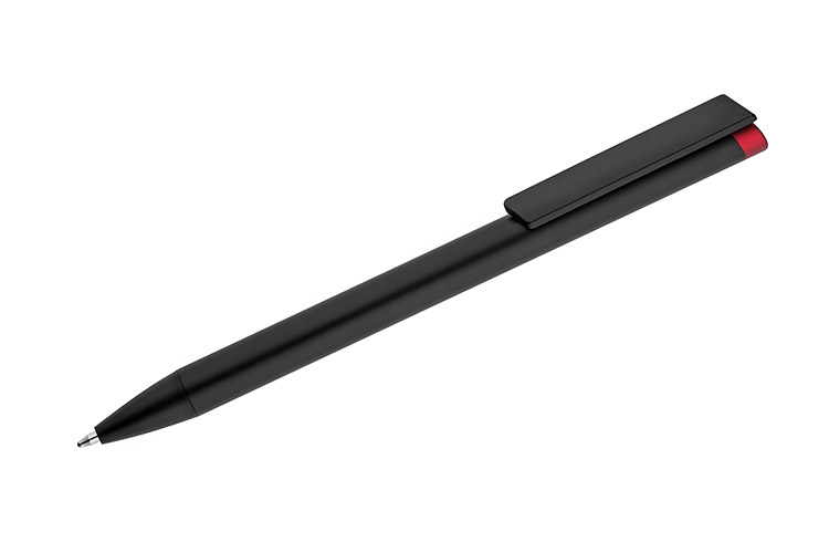 ALI ist ein einzigartiger Stift, der das Markieren in der ähnliche Farbe zu der Stiftspitze und eine völlig überraschende Gravur in zwei Farben - ähnlich der Stiftspitze und weiß (Aluminium) ermöglicht. Der schwarze Metallkörper und der schwarze Finish sind der perfekte Hintergrund für farbige Gravuren. Automatischer Kugelschreiber Ersatzmine des Typs X20 mit einer Dicke von 1.0 mm in blau.