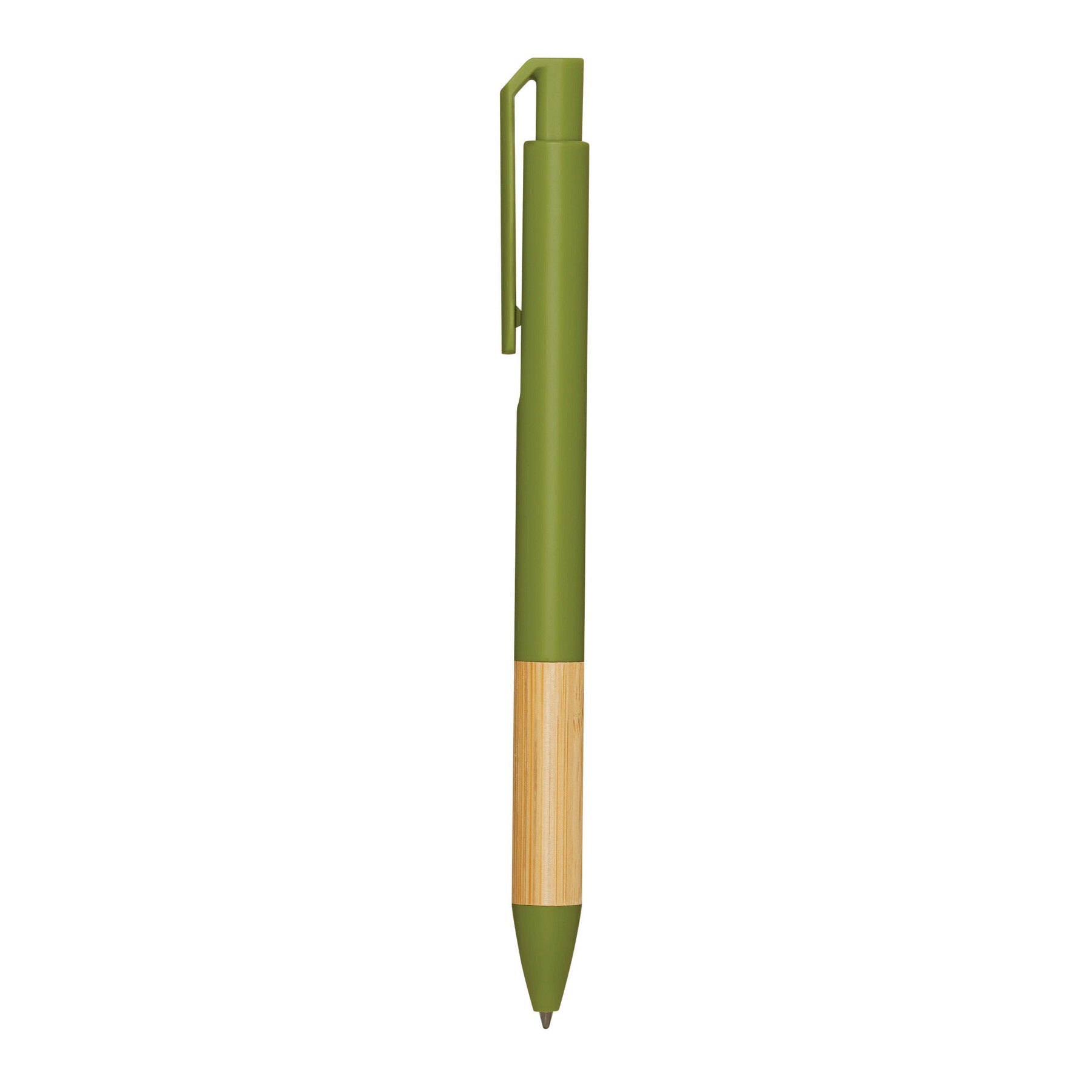 Kugelschreiber ANDANTE: mit Schaft aus recyceltem Kunststoff, Griffzone aus lackiertem Bambus, Druckmechanismus, blauschreibend