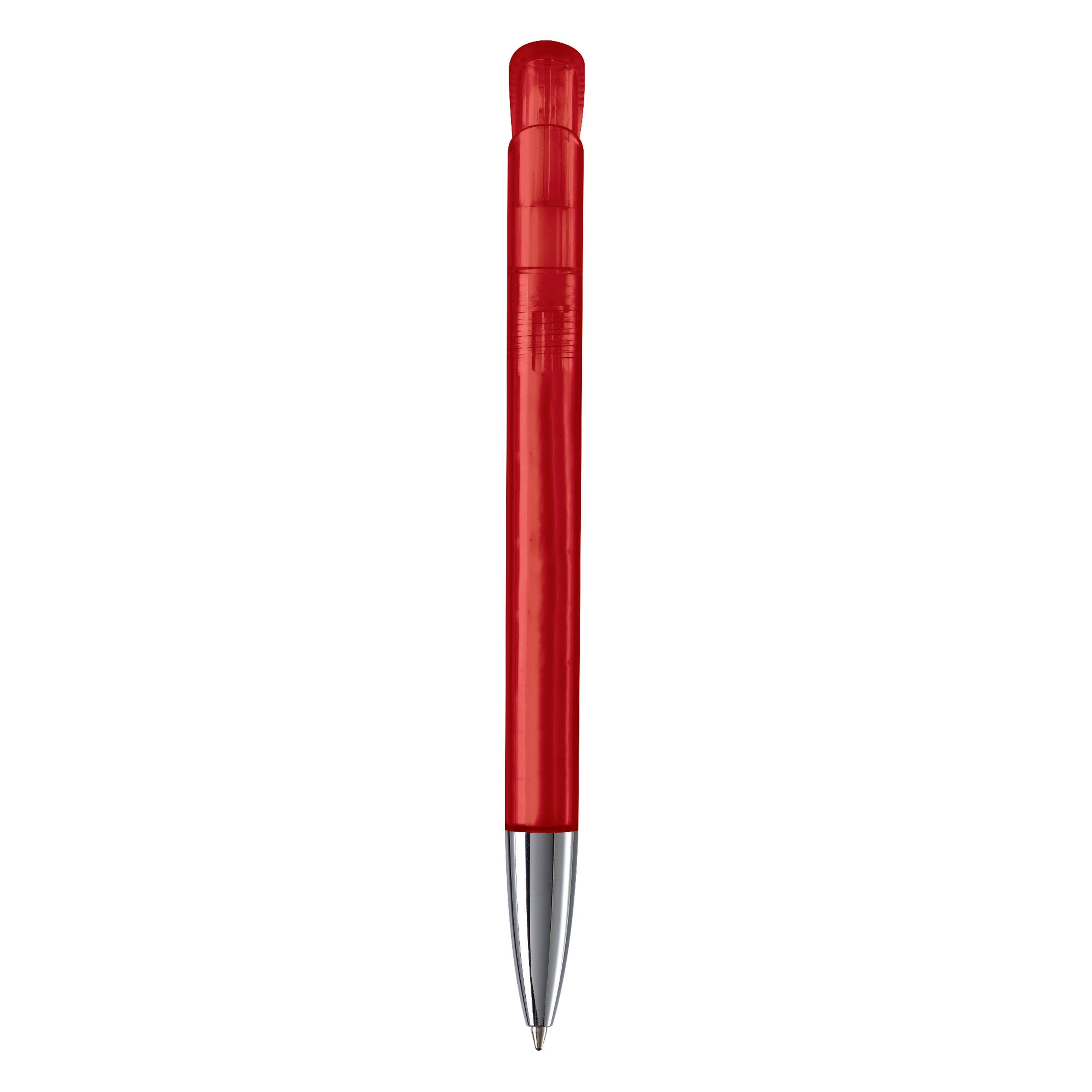 Toppoint Design-Kugelschreiber, Made in Germany. Kugelschreiber mit transparenten Gehäuse inkl. Metallspitze. Jumbo-Mine mit einer Schreibleistung von 4,5km. Minenfarbe: blau.