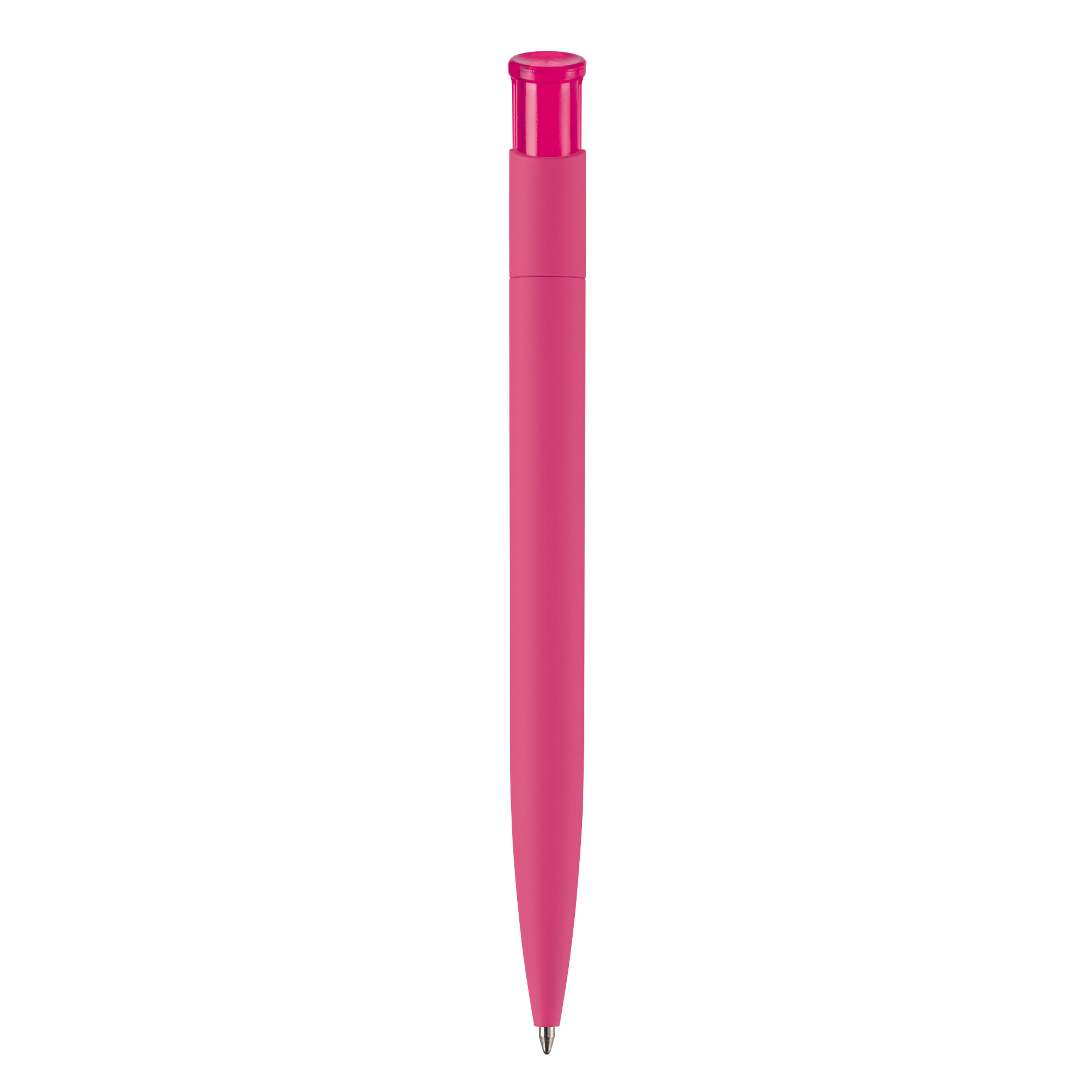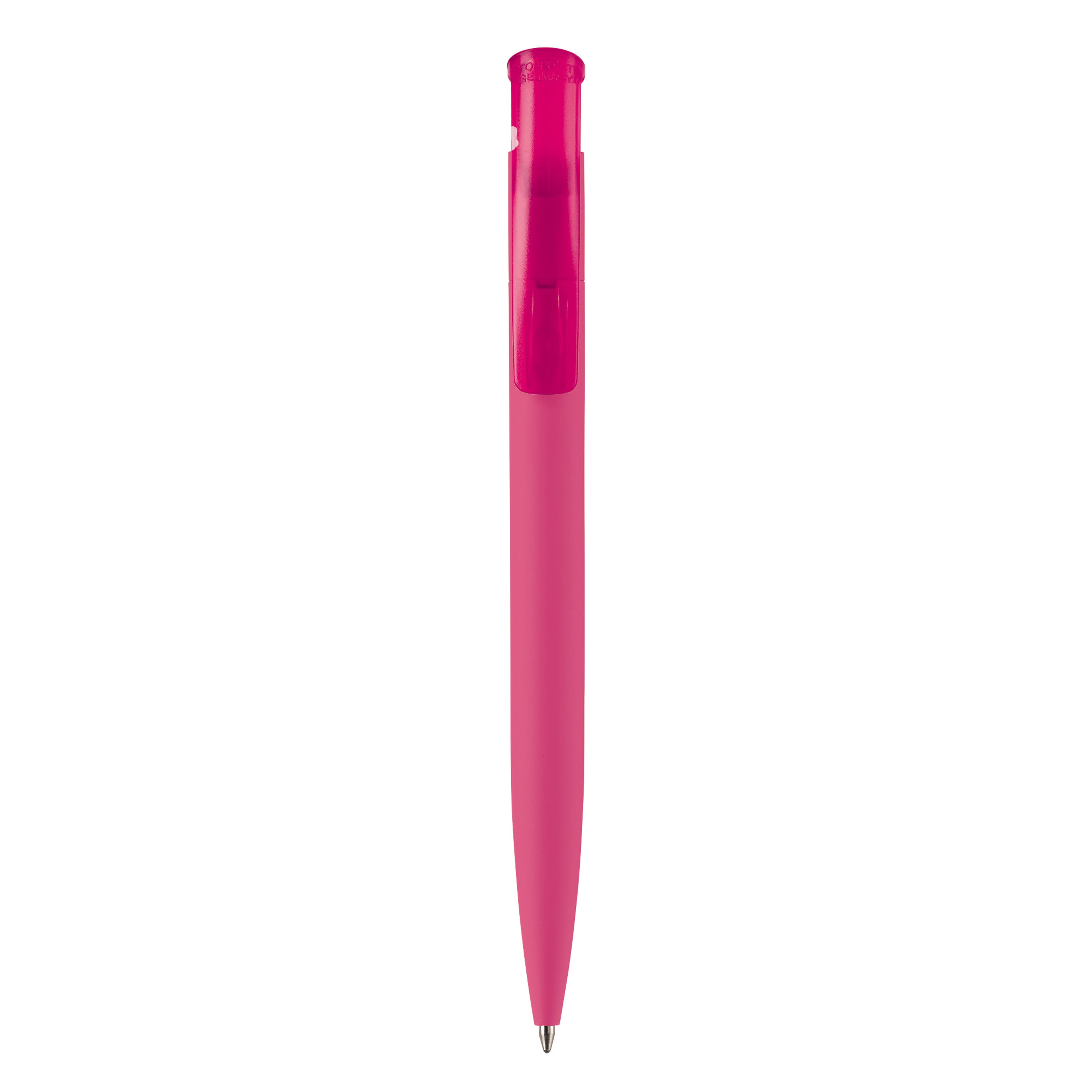 Beliebter Kugelschreiber im Toppoint-Design mit Soft-Touch-Körper und Clip in transparent. Made in Germany. Mit einer Jumbo-Mine mit 4,5km Schreibleistung. Minenfarbe blau.