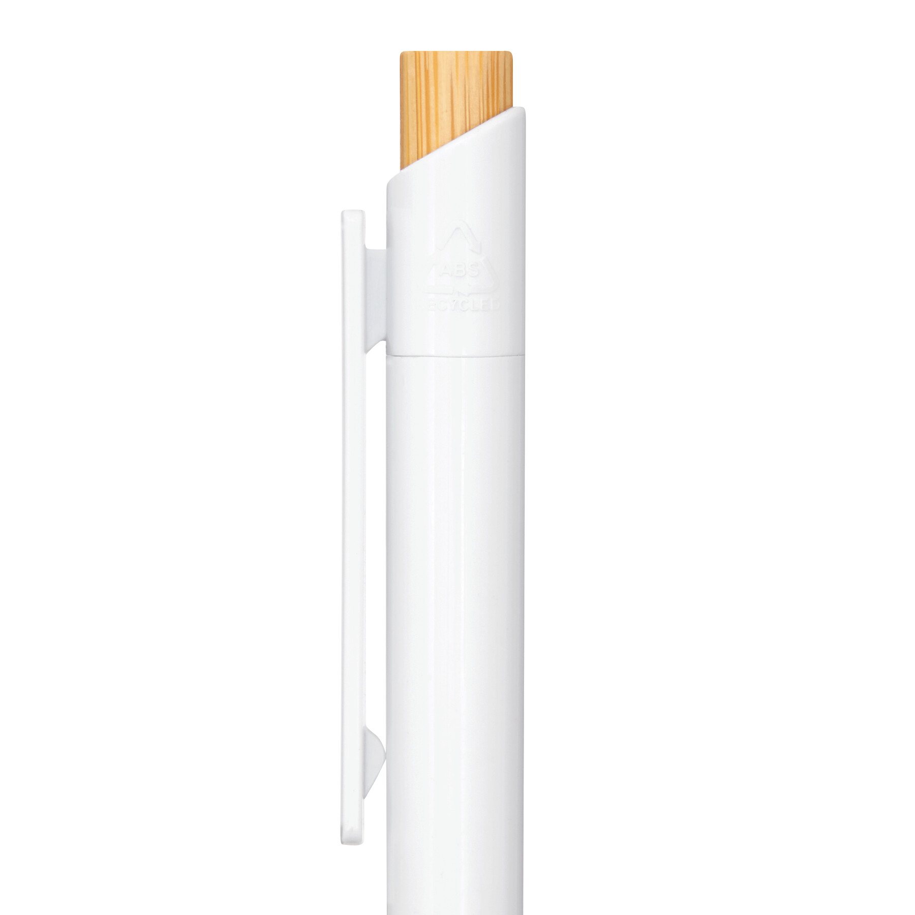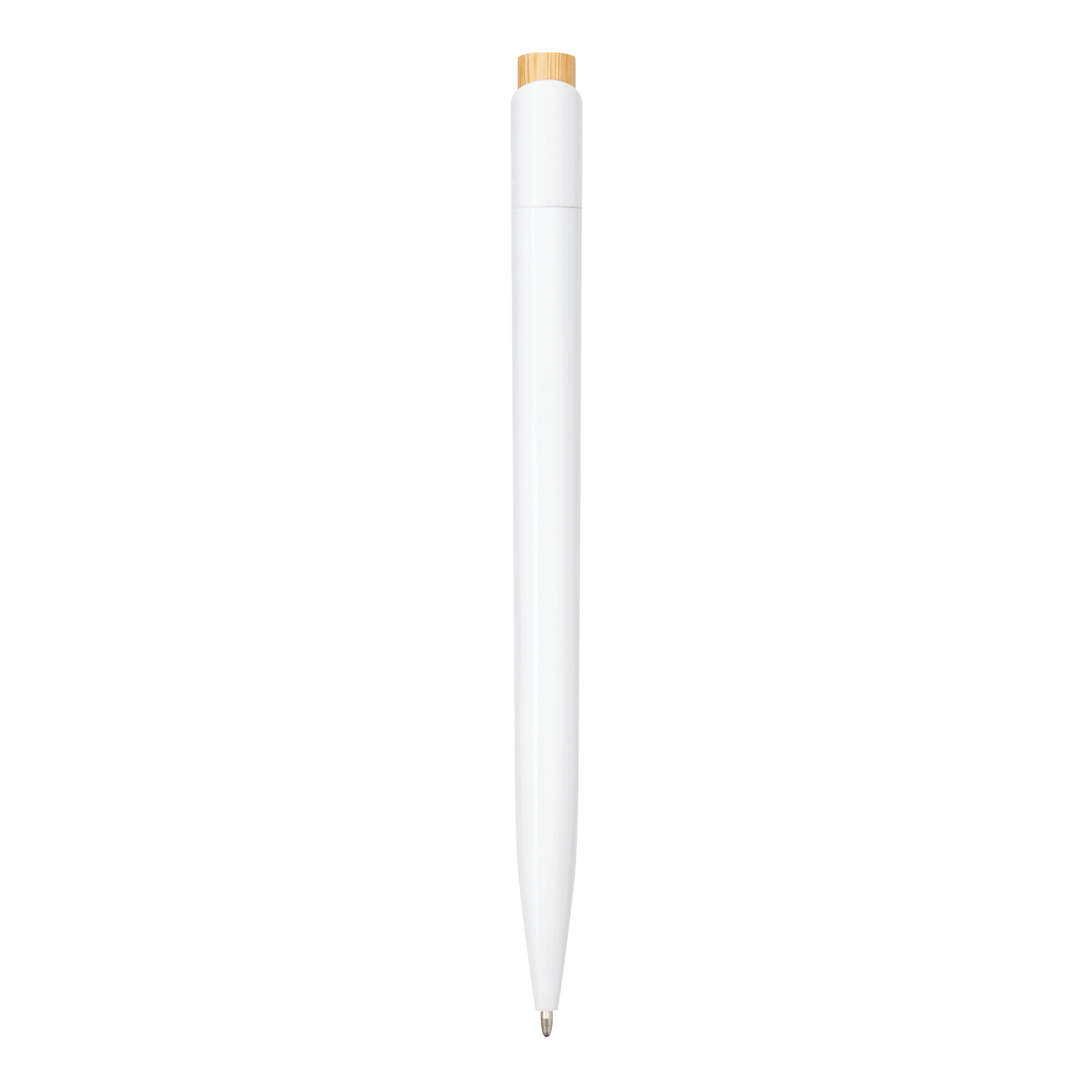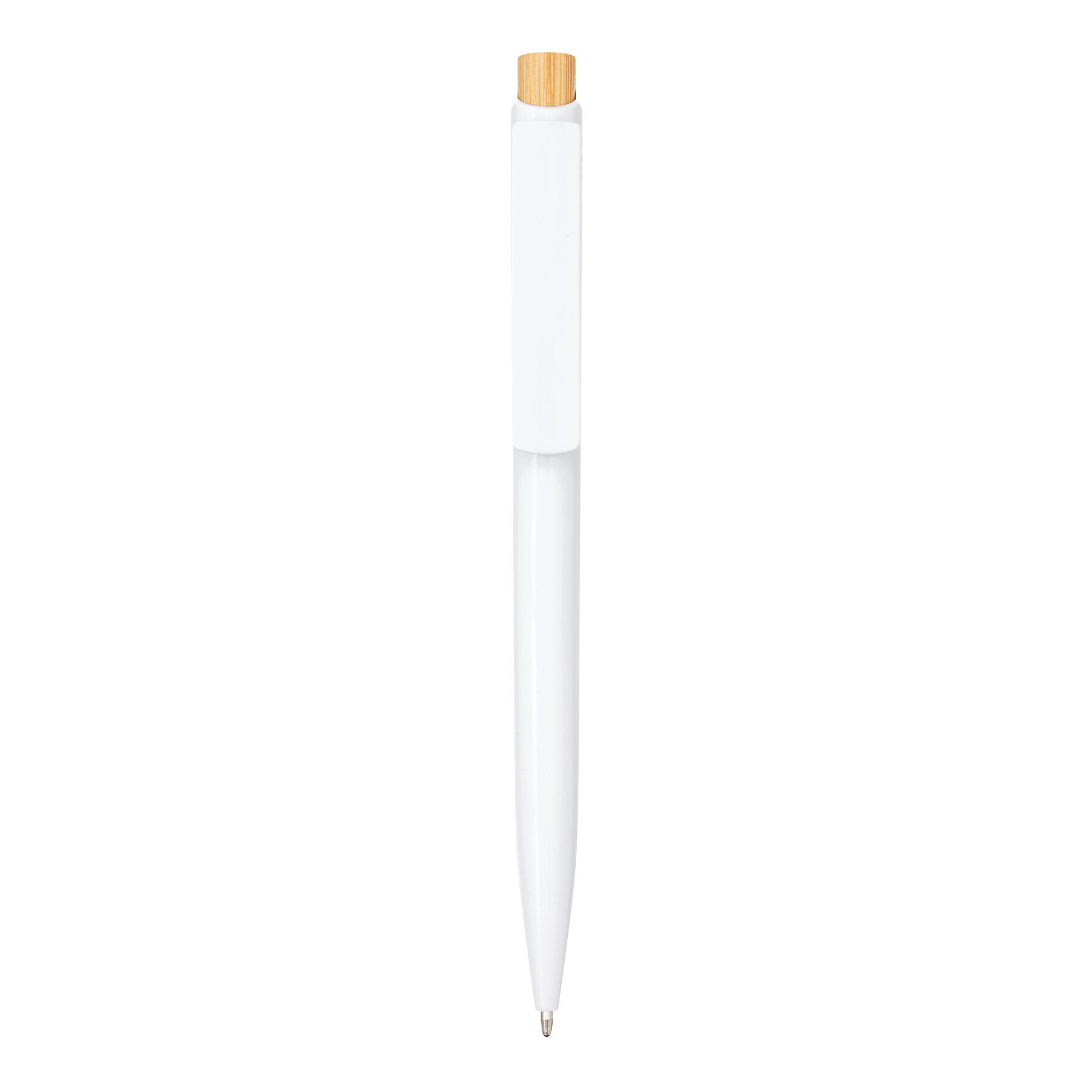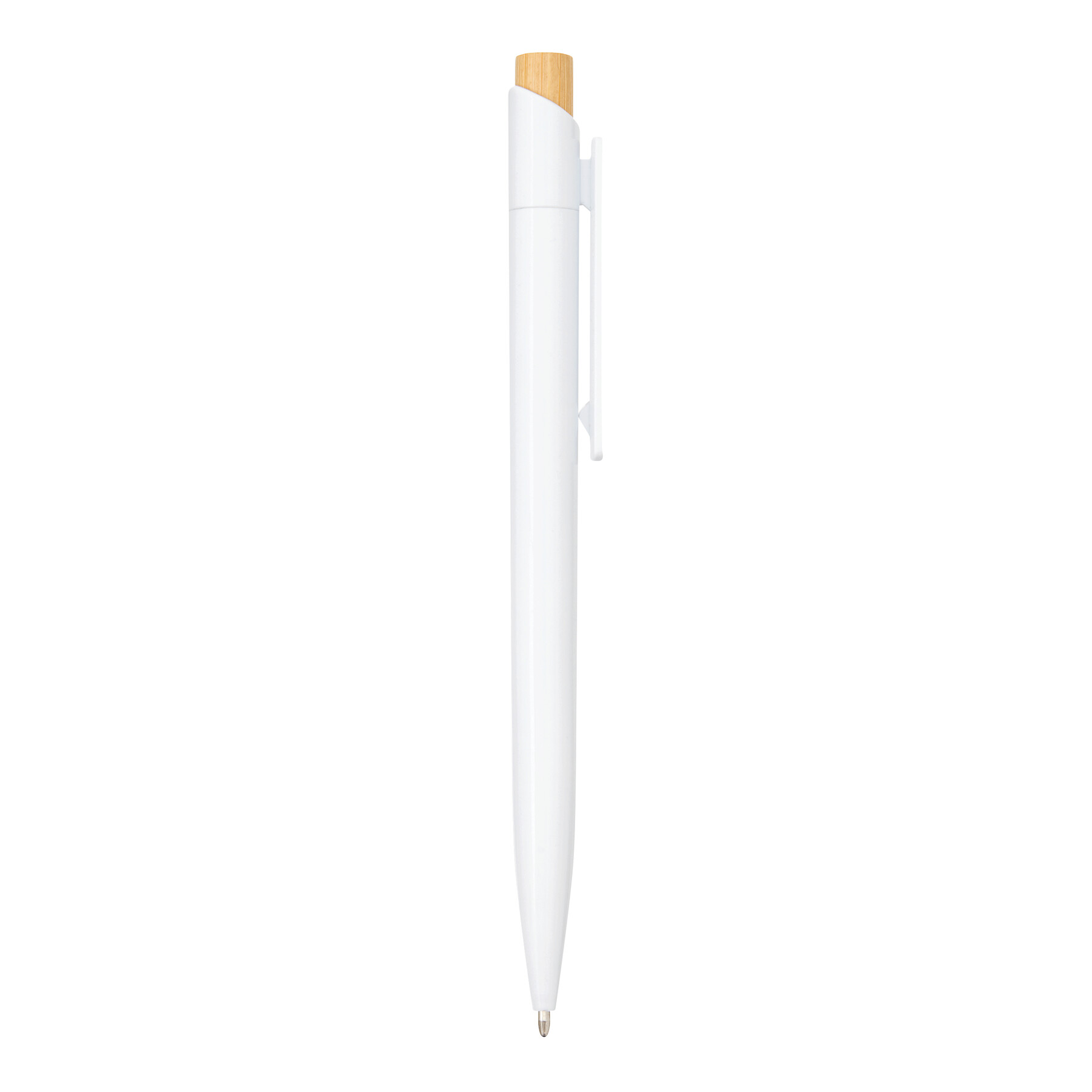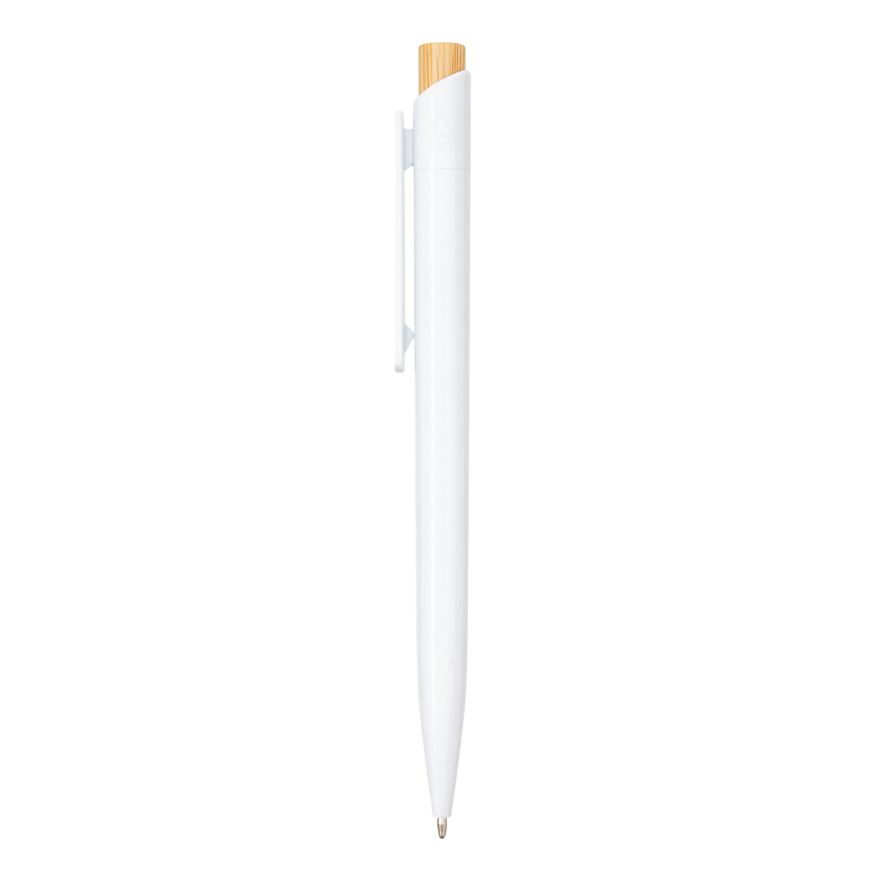 Kugelschreiber BAPU: mit Schaft aus recyceltem Kunststoff, Drücker aus Bambus, Druckmechanismus, blauschreibend