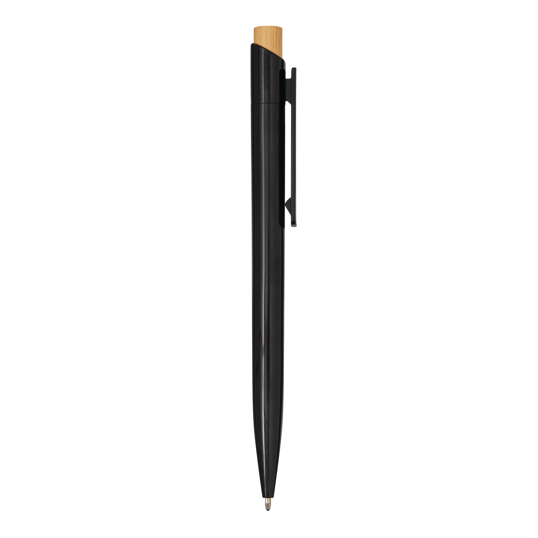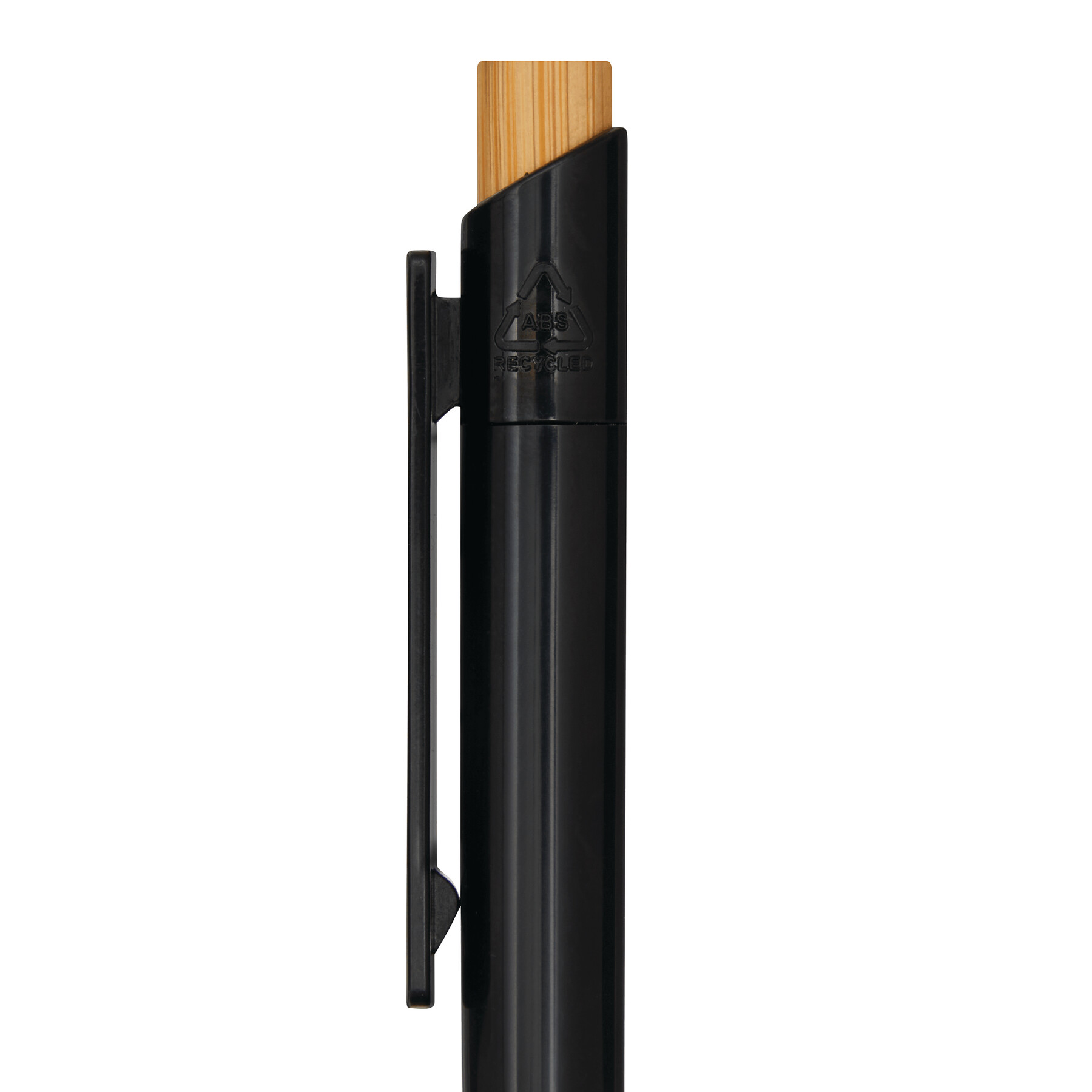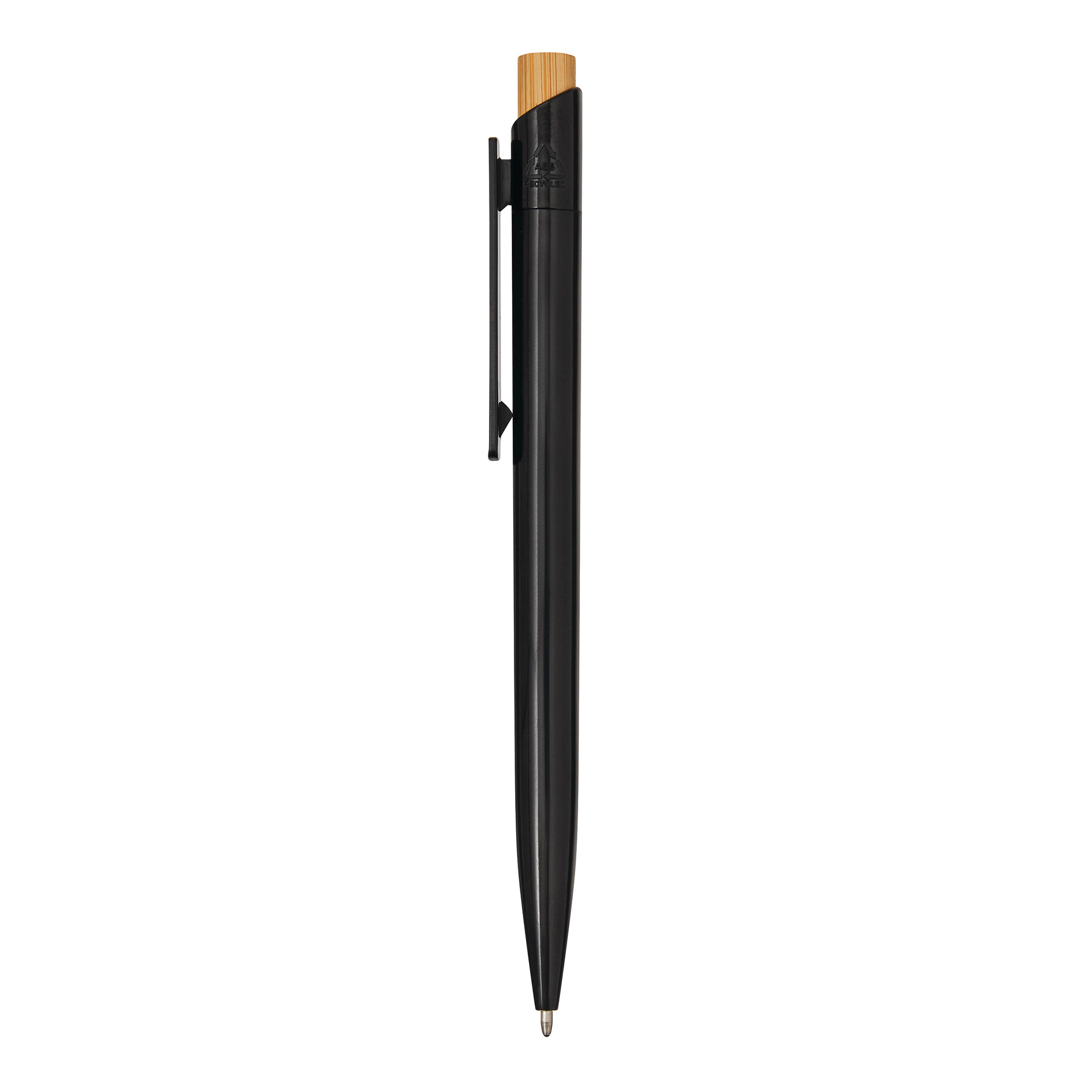 Kugelschreiber BAPU: mit Schaft aus recyceltem Kunststoff, Drücker aus Bambus, Druckmechanismus, blauschreibend