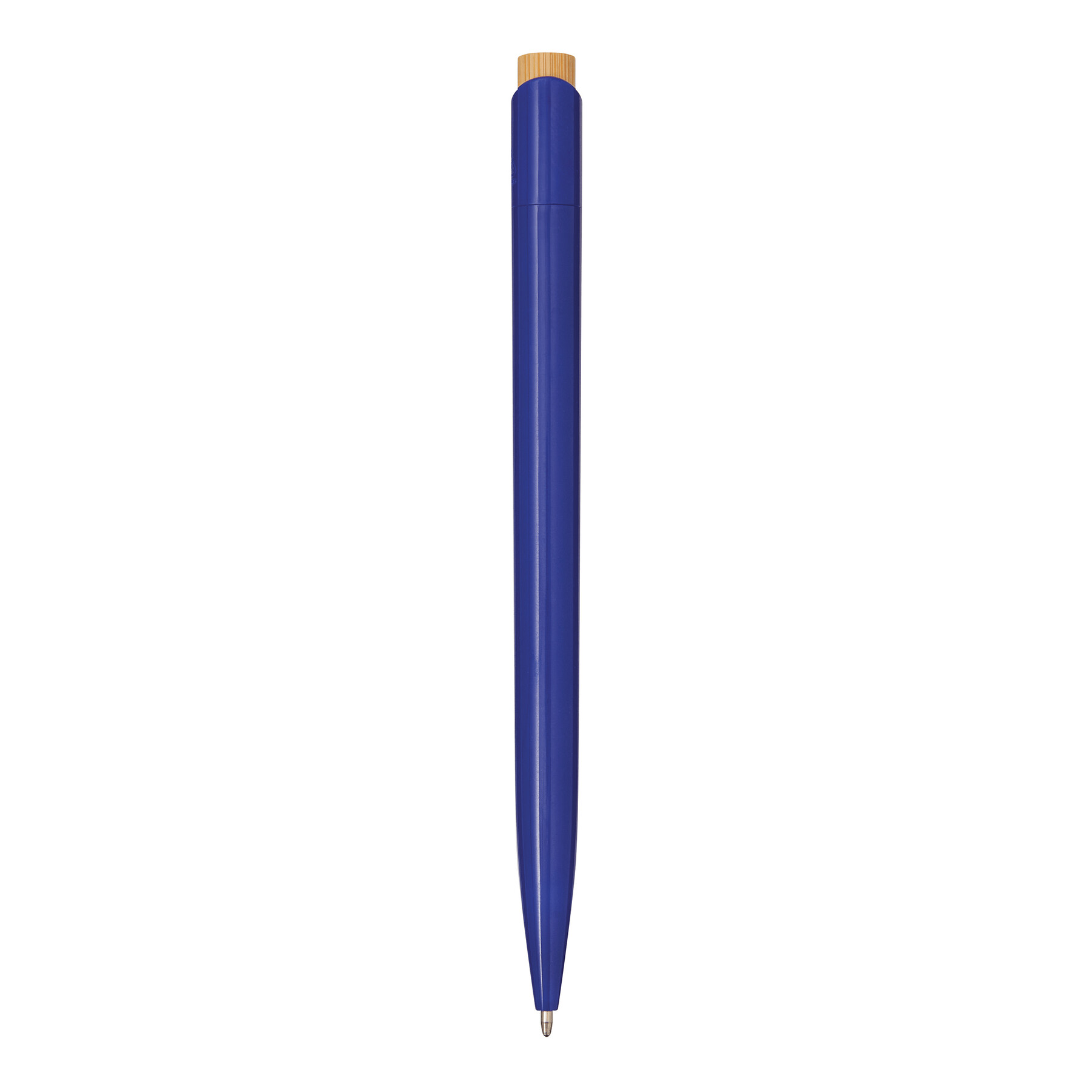 Kugelschreiber BAPU: mit Schaft aus recyceltem Kunststoff, Drücker aus Bambus, Druckmechanismus, blauschreibend