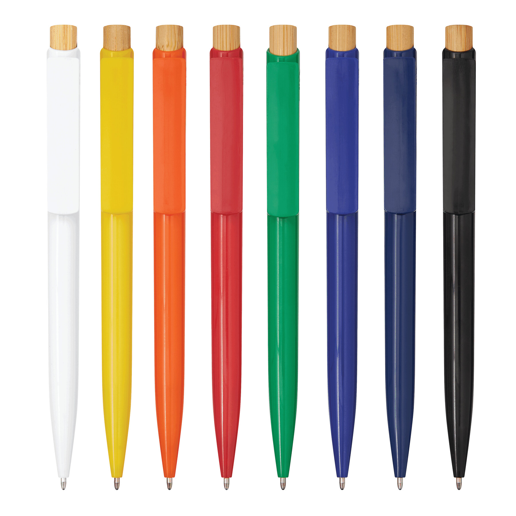 Kugelschreiber BAPU: mit Schaft aus recyceltem Kunststoff, Drücker aus Bambus, Druckmechanismus, blauschreibend