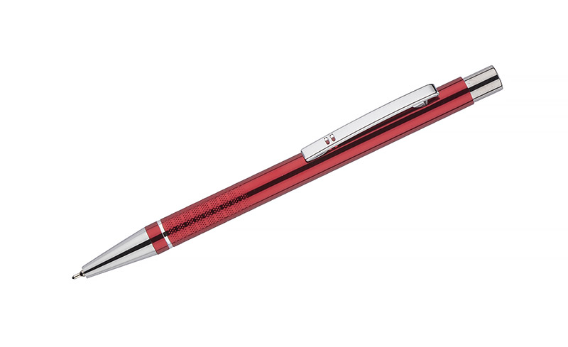 Der Kugelschreiber BONITO ist ein eleganter Metallkugelschreiber in Metallfarben mit Chromverzierung. Der Kugelschreiberkörper aus hochwertigem Aluminium ist mit einem silbernen Ring und Streifen mit einer leicht rauen Textur verziert. Der Stift ist mit einer schwarzen 0,7mm Halbgelmine ausgestattet.