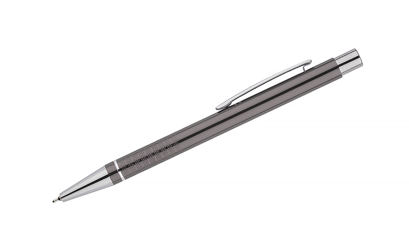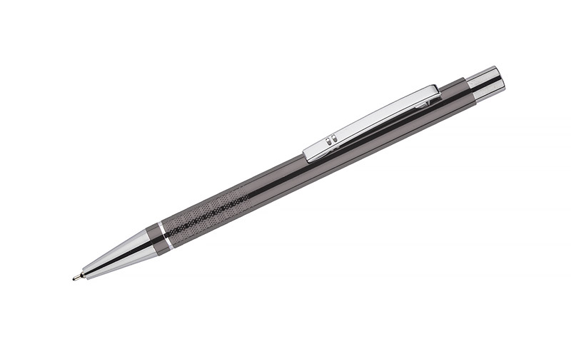 Der Kugelschreiber BONITO ist ein eleganter Metallkugelschreiber in Metallfarben mit Chromverzierung. Der Kugelschreiberkörper aus hochwertigem Aluminium ist mit einem silbernen Ring und Streifen mit einer leicht rauen Textur verziert. Der Stift ist mit einer schwarzen 0,7mm Halbgelmine ausgestattet.