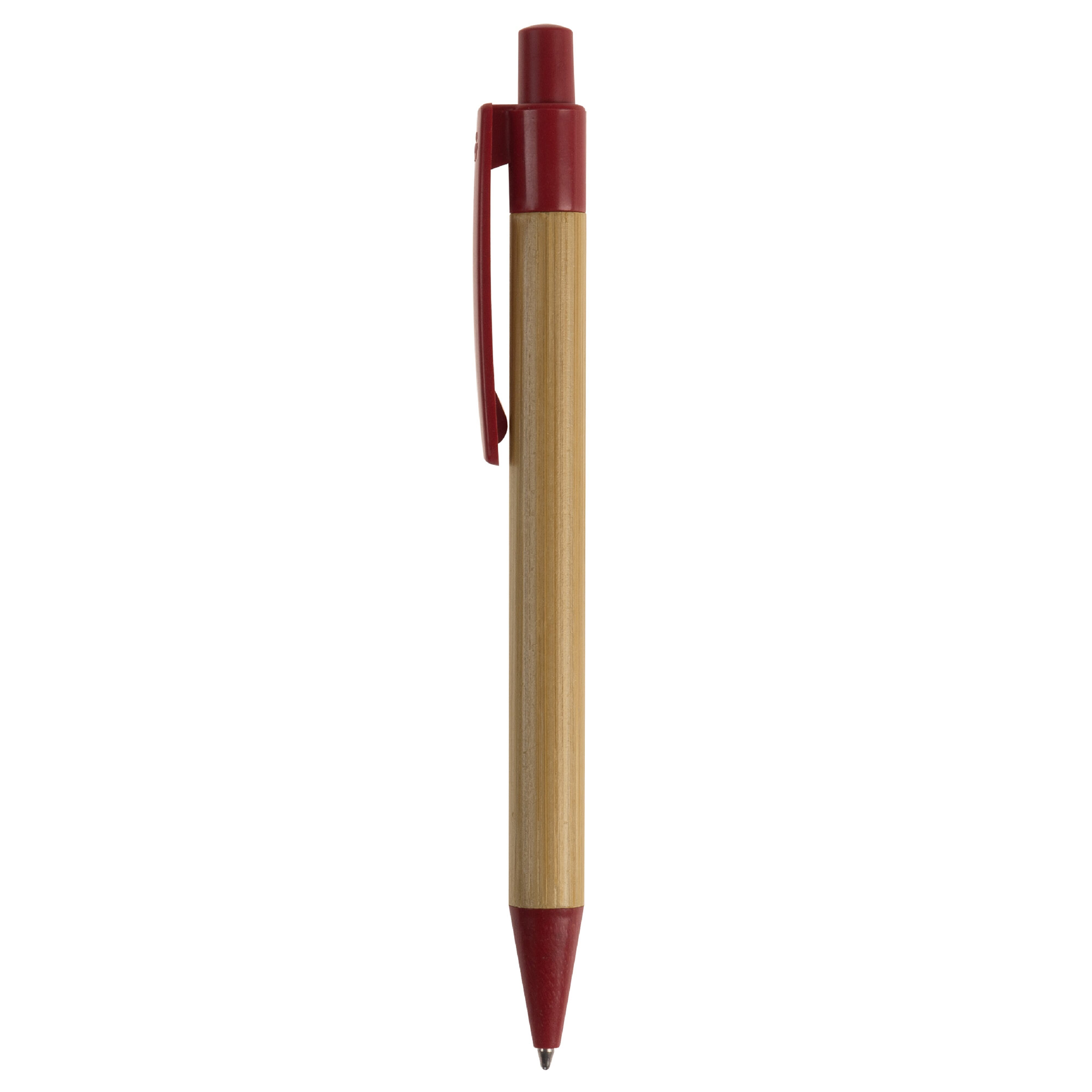 Kugelschreiber aus Bambus mit Clip, Drücker und Spitze aus Weizenstroh und einer blau schreibenden X20-Kunststoffmine.