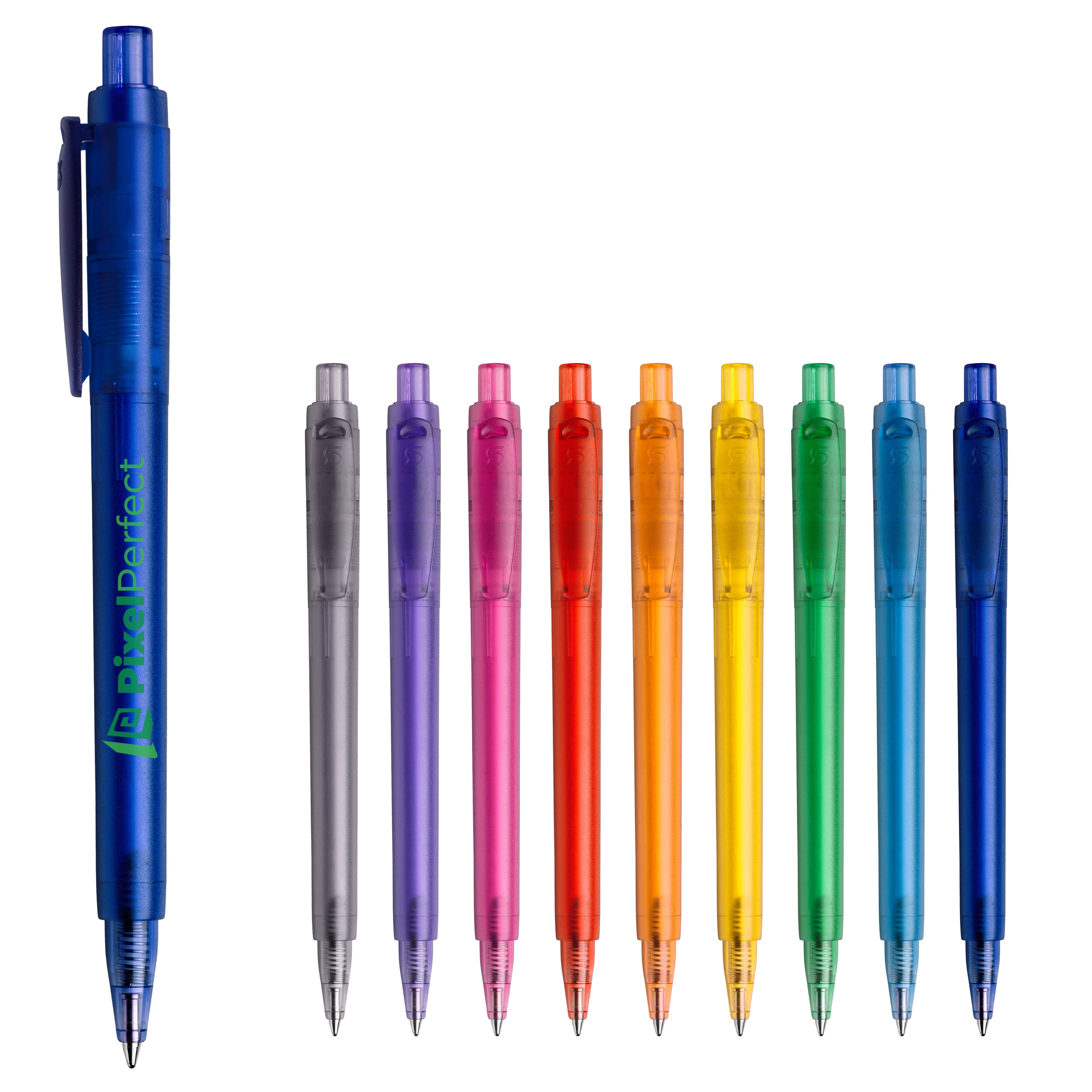 Der Baron '03 Happy Frosty Kugelschreiber ist aus gefrosteten Kunststoff und verfügt über einen breiten Clip. Ausgestattet mit einer blau schreibenden Jumbo-Mine. Der Kugelschreiber besteht aus ABS und wird in Europa hergestellt. Ab einer Abnahmemenge von 5.000 Stück sind eigene Farbkombinationen möglich.