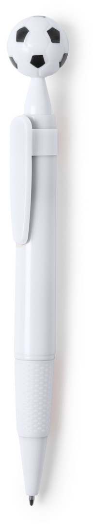 Kugelschreiber für Fußballfans, mit Detail in Form eines Balls. Push-up-Mechanismus in auffälligem, zweifarbigem Design. Korpus in weißer Farbe, mit Clip und Griff in passender Farbe und in einer breiten Palette von Farbtönen. Großer Druckbereich und blaue Tintennachfüllung.