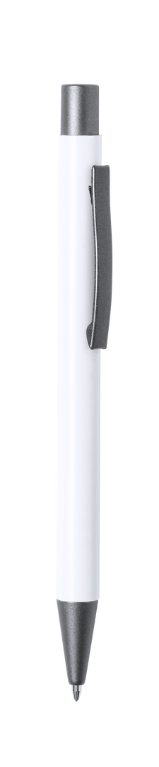 Umweltfreundlicher Kugelschreiber aus recyceltem Aluminium, dessen Ursprung in der fast unendlichen Wiederverwendung eines der Materialien mit dem größten Potenzial für die Wiederverwertbarkeit liegt, wobei es seine ursprünglichen Eigenschaften beibehält. Dies macht ihn zu einem umweltfreundlichen, recycelten und leicht wiederverwertbaren Material. Darüber hinaus können die während des Recyclingprozesses anfallenden Rückstände zur Gewinnung neuer, wiederverwendbarer Ressourcen genutzt werden, was neben anderen Nachhaltigkeitsfaktoren zu einem geringeren Energieverbrauch in der Herstellungsphase führt. Druckknopfmechanismus, erhältlich in einer breiten Palette von Metallic-Farben, mit Zubehör in Rotgussoptik. Metallischer Clip, blaue Tinte und Logo aus recyceltem Aluminium auf dem oberen Teil des Kugelschreibers. GRS-Zertifizierung (Global Recycled Standard), die die recycelte Herkunft des für die Herstellung des Produkts verwendeten Materials garantiert.