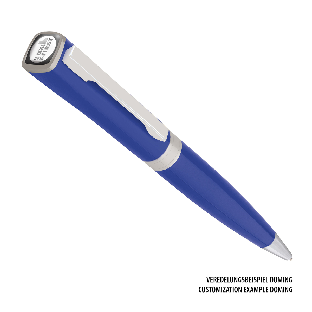 CLIC CLAC exklusiv: Individuell mit einem Doming veredelt erhält dieser Kugelschreiber durch Ihr Logo echten Markencharakter. Das quadratische Doming wird am Kugelschreiberkopf aufgebracht.