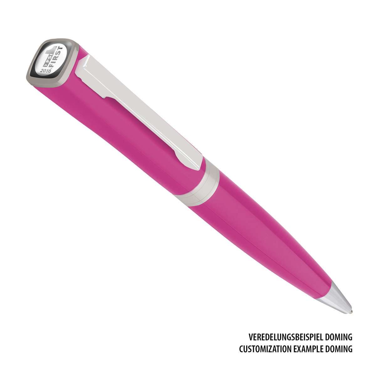 CLIC CLAC exklusiv: Individuell mit einem Doming veredelt erhält dieser Kugelschreiber durch Ihr Logo echten Markencharakter. Das quadratische Doming wird am Kugelschreiberkopf aufgebracht.