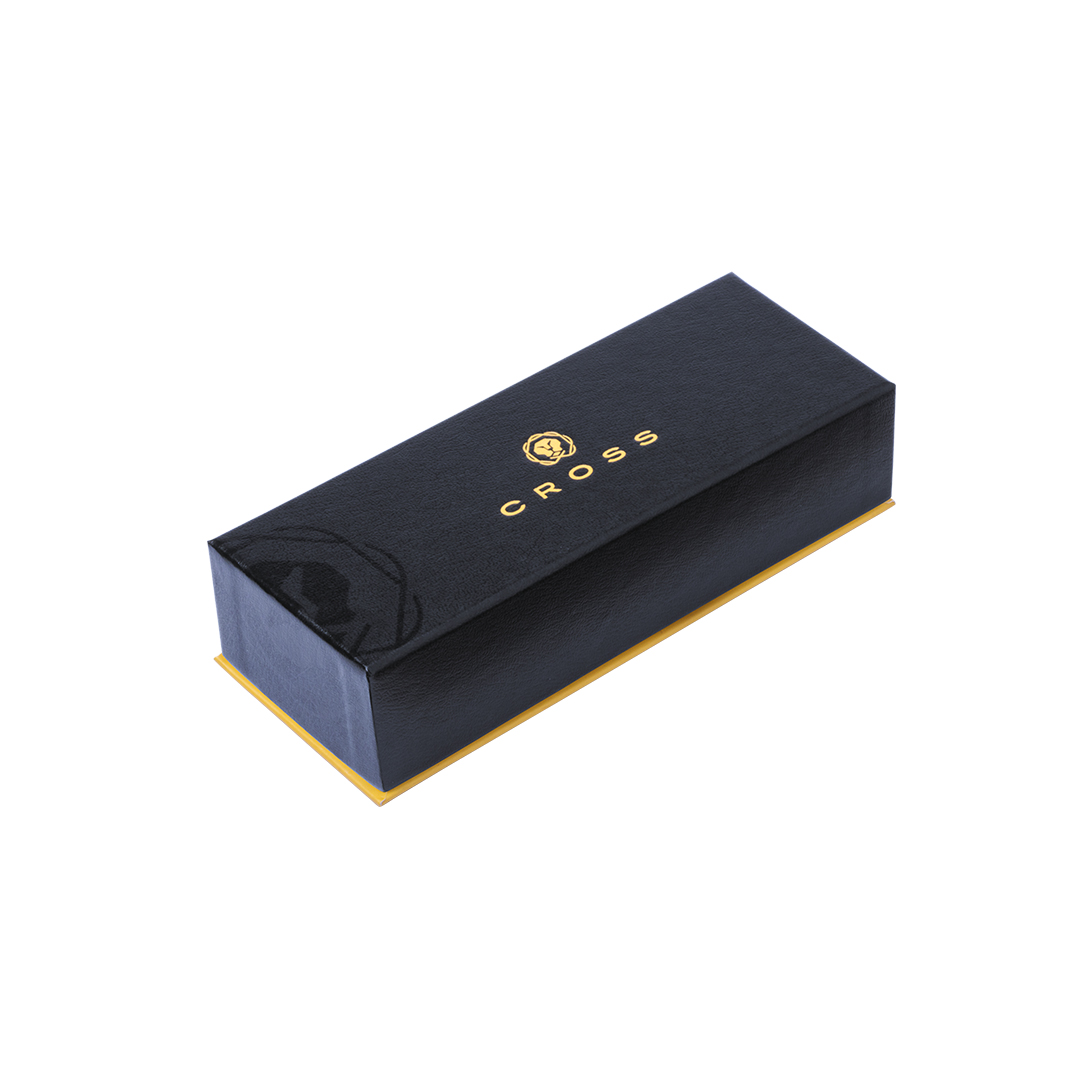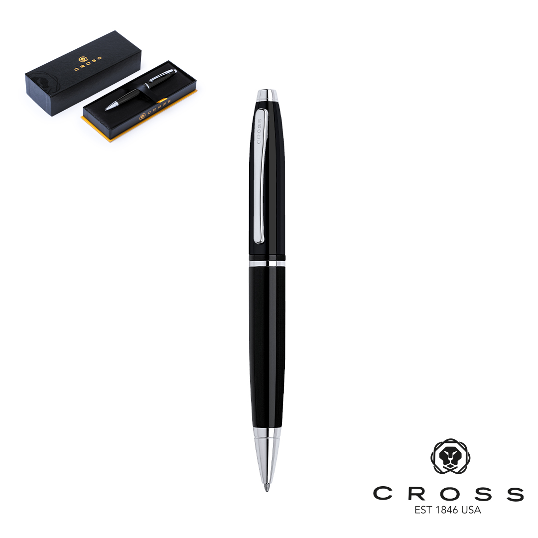 Druck-Kugelschreiber von Cross - Modell Calais. Mit elegantem, zweifarbigem Design und geschmeidigem Metallgehäuse in verschiedenen Farben. Präsentiert in einer individuellen, eleganten Schachtel in Schwarz mit dem Markenlogo, sowie Wildleder-Interieur in passender Farbe. Schwarze Tinte.