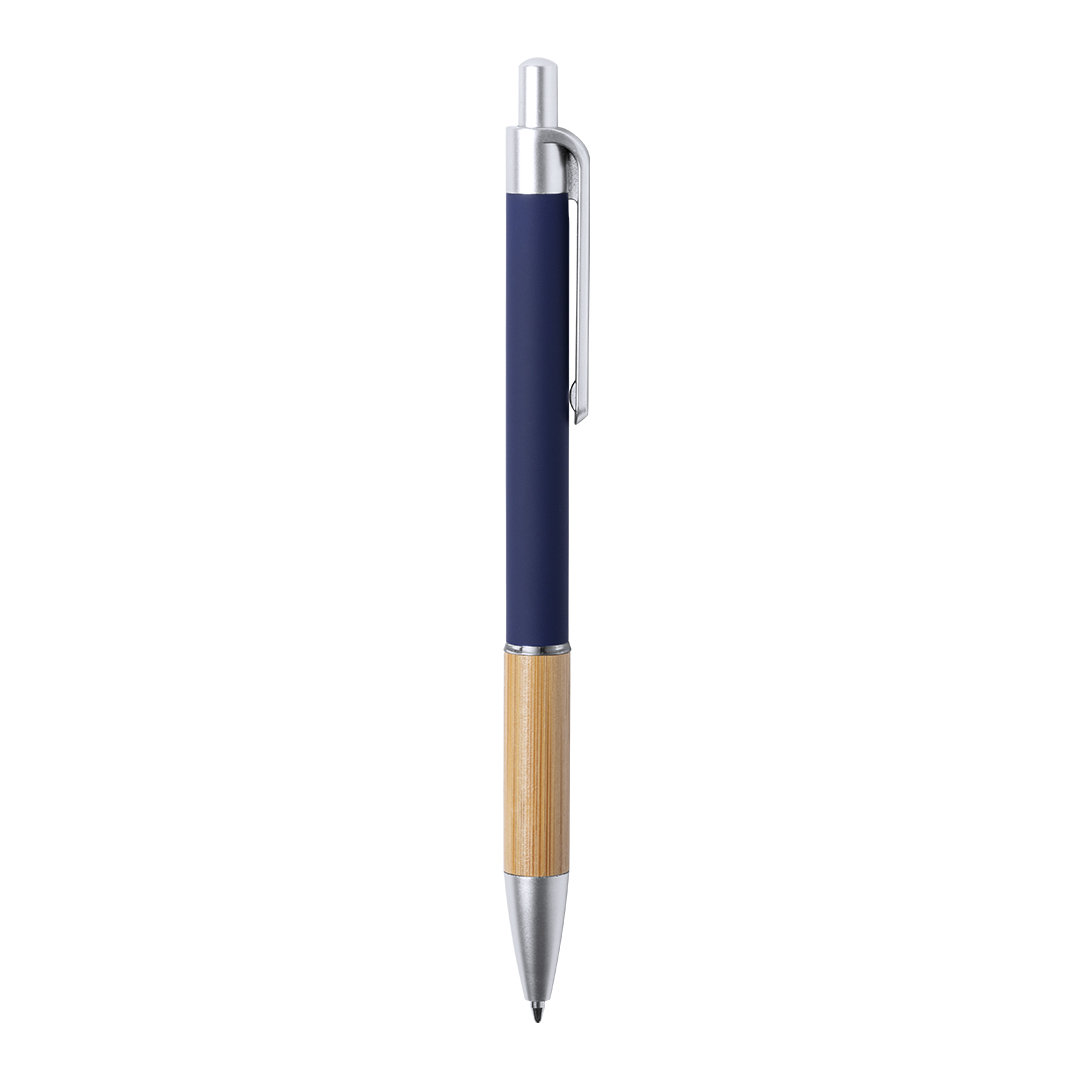 Nature Line Kugelschreiber mit Druckknopfmechanismus. Elegantes Design mit mattiertem Aluminiumschaft und Bambusgriff, mit mattierten Beschlägen. Clip mit Metallic-Finish und transparentem Ring, in blauer Farbe. Erhältlich in einer breiten Palette von Farben.
