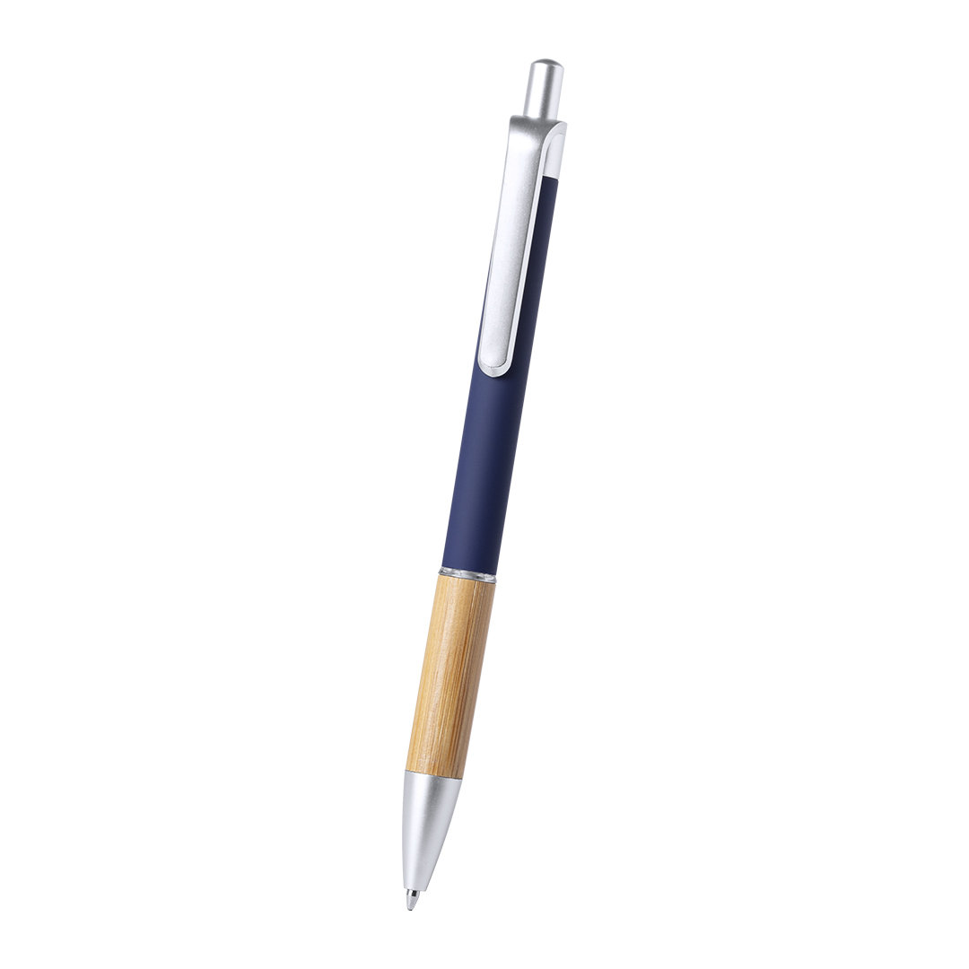 Nature Line Kugelschreiber mit Druckknopfmechanismus. Elegantes Design mit mattiertem Aluminiumschaft und Bambusgriff, mit mattierten Beschlägen. Clip mit Metallic-Finish und transparentem Ring, in blauer Farbe. Erhältlich in einer breiten Palette von Farben.