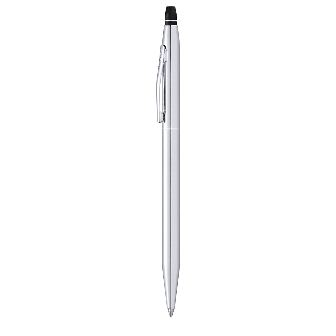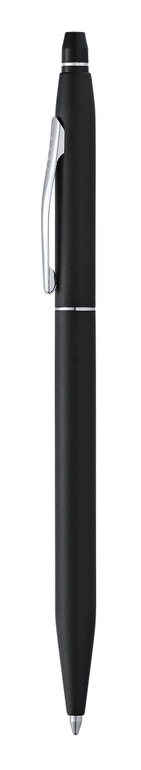 Kugelschreiber Cross Classik Click, der die ikonische Cross-Silhouette mit einem schnellen, versenkbaren Klickmechanismus und einem glatten Metallschaft kombiniert. Jumbo-Patrone in schwarzer Tinte. Präsentiert in einem eleganten, schwarzen Etui mit Markenlogo und weichem Wildlederfutter.