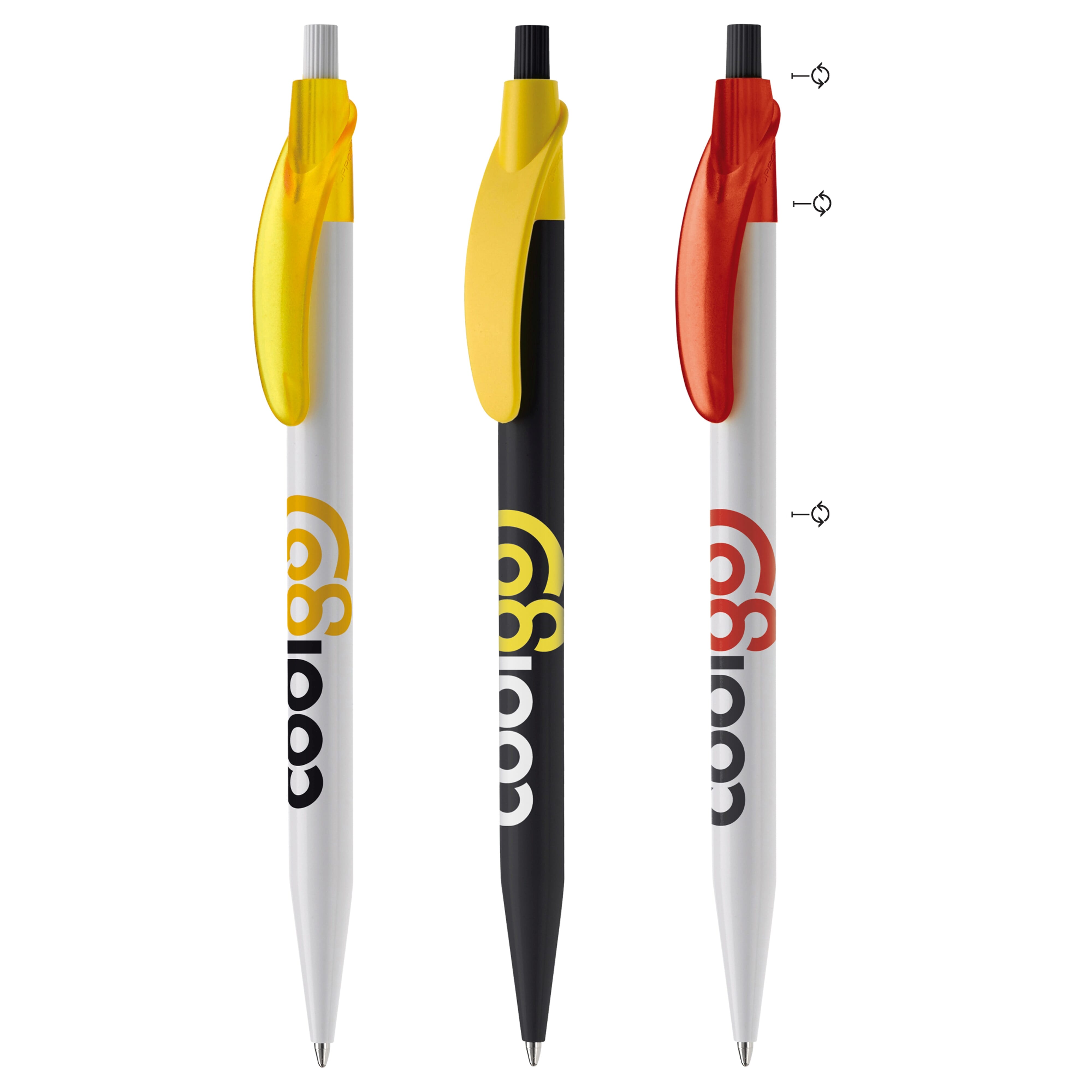 Schlanker Toppoint Kugelschreiber mit Bogenclip. Made in Germany. Komplett nach Wunsch zusammenstellbar. Eigene PMS Farben ab 10.000 Stück möglich. Ausgestattet mit einer X20-Mine. Schreibleistung 2,5km. Die Schreibfarbe ist in blau, rot, schwarz oder grün frei wählbar. Kombination hardcolour / transparent.