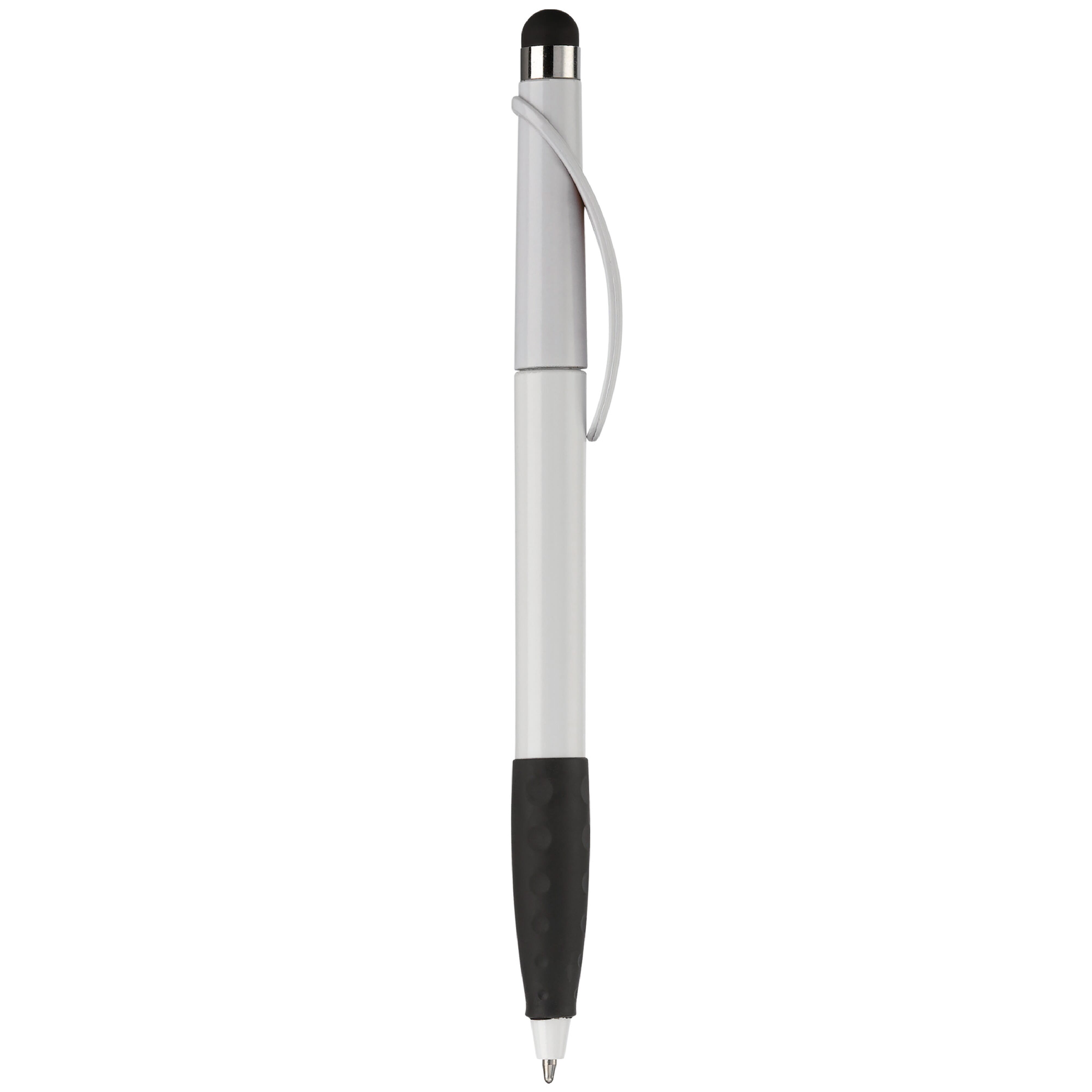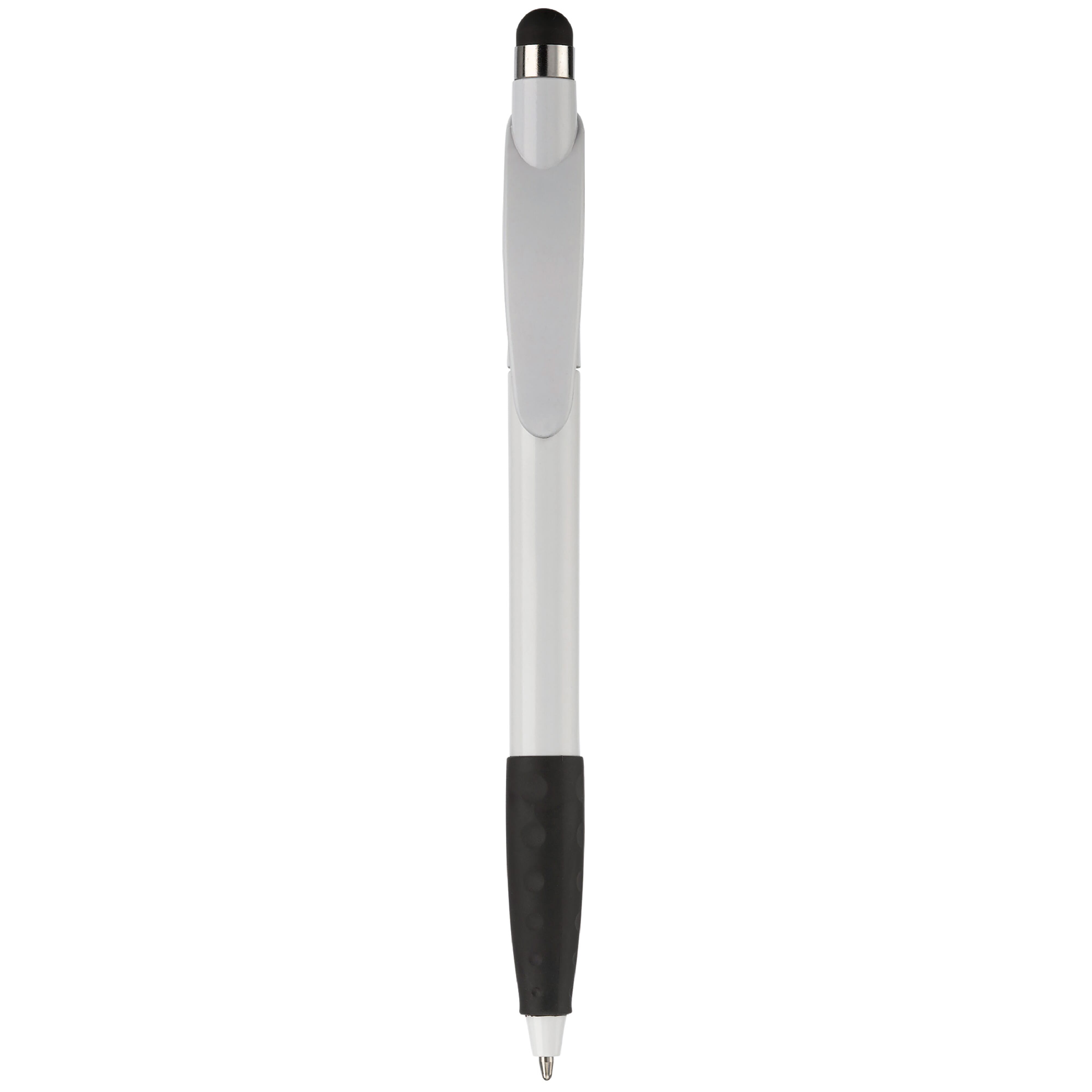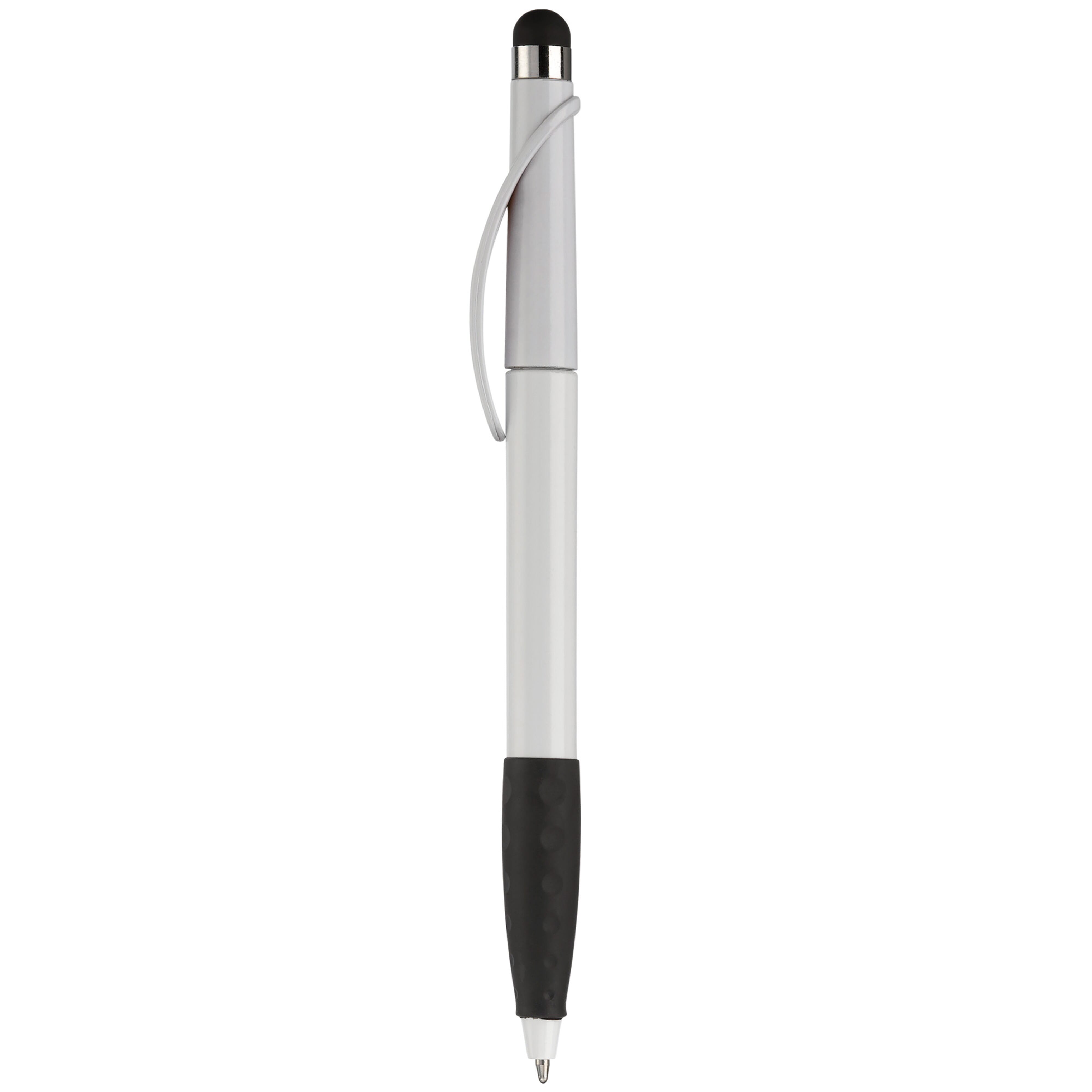 Kunststoffkugelschreiber mit Bogenclip, Gummimanschette und Stylus. Drehmechanik. Toppoint Design. Blauschreibend.