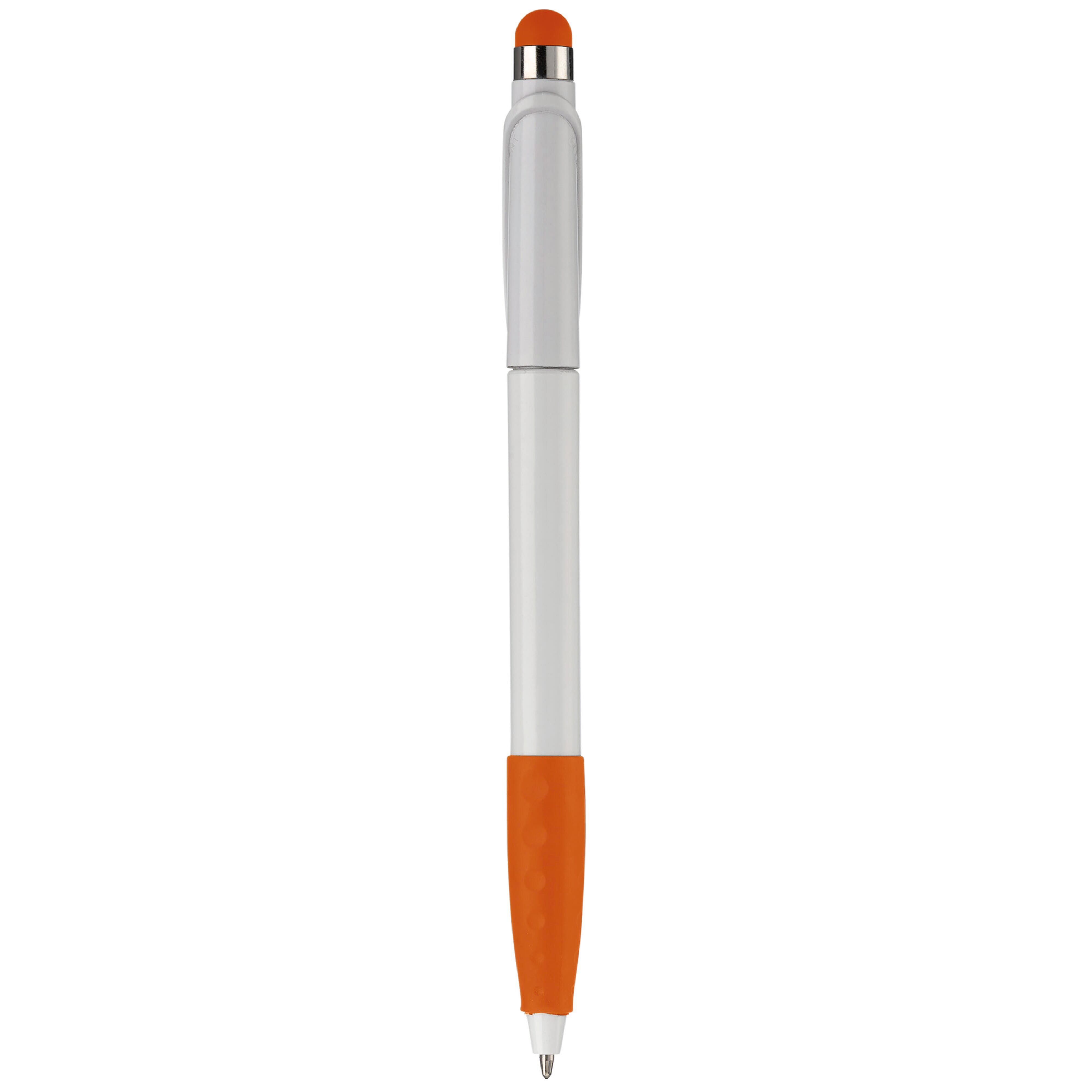 Kunststoffkugelschreiber mit Bogenclip, Gummimanschette und Stylus. Drehmechanik. Toppoint Design. Blauschreibend.