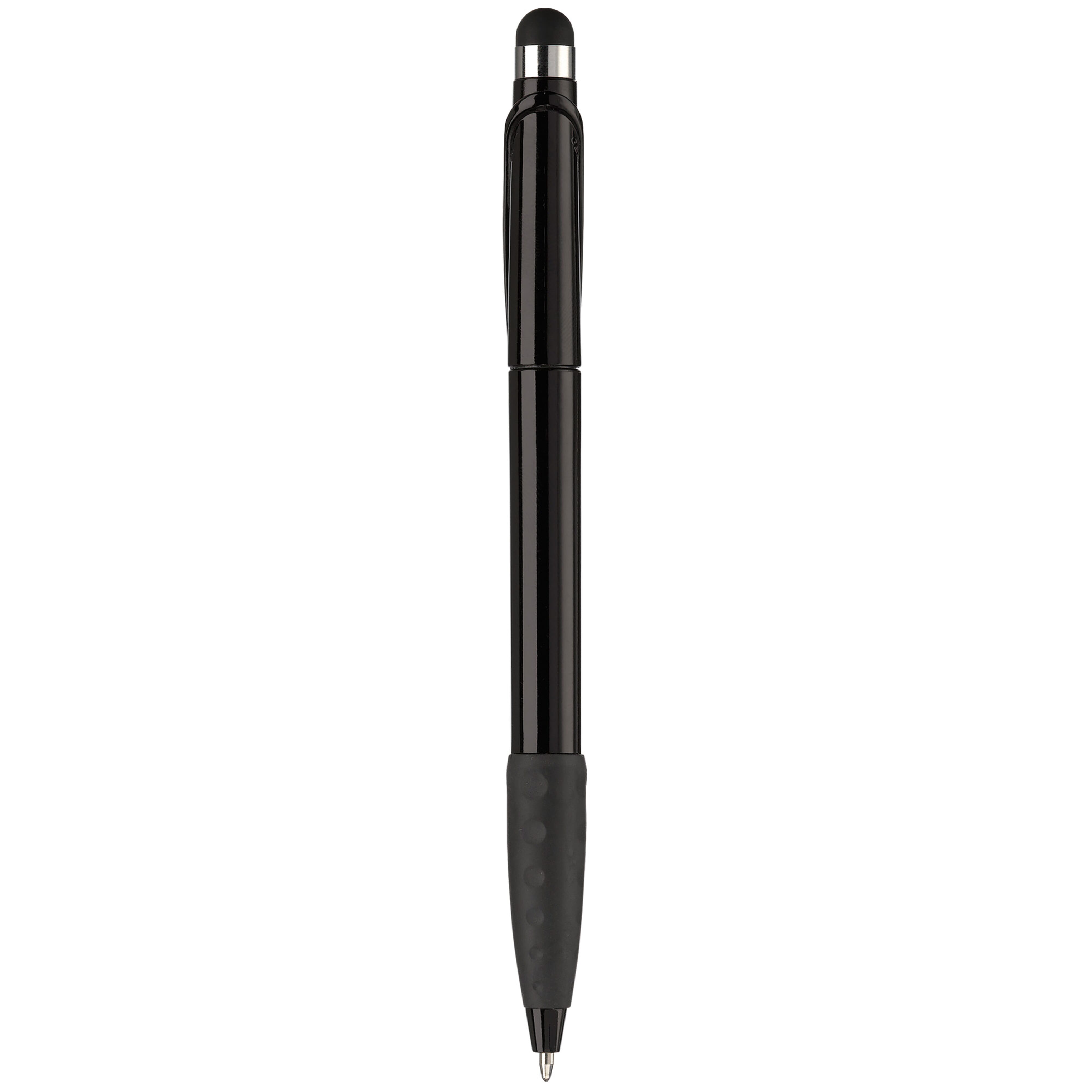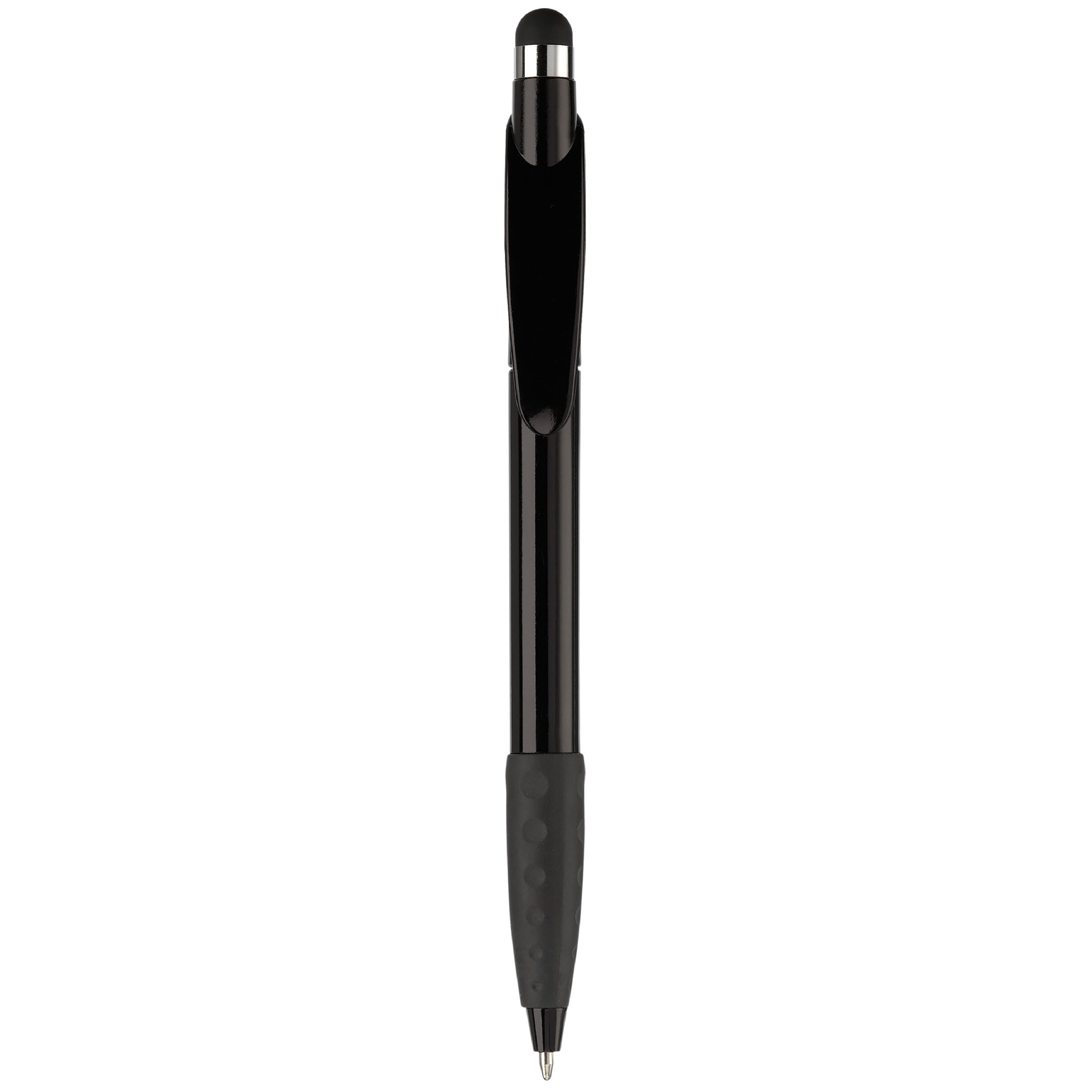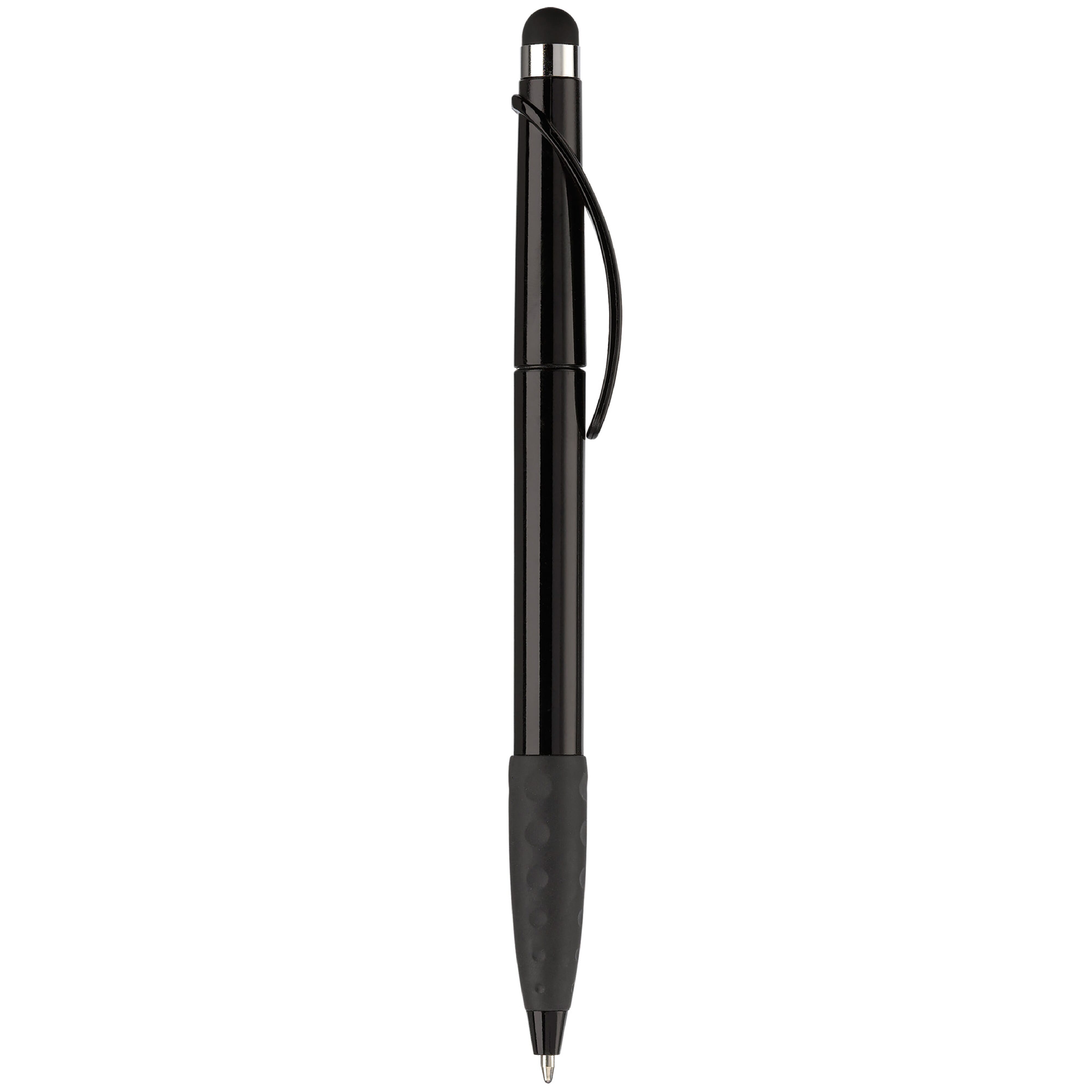 Kunststoffkugelschreiber mit Bogenclip, Gummimanschette und Stylus. Drehmechanik. Toppoint Design. Blauschreibend.