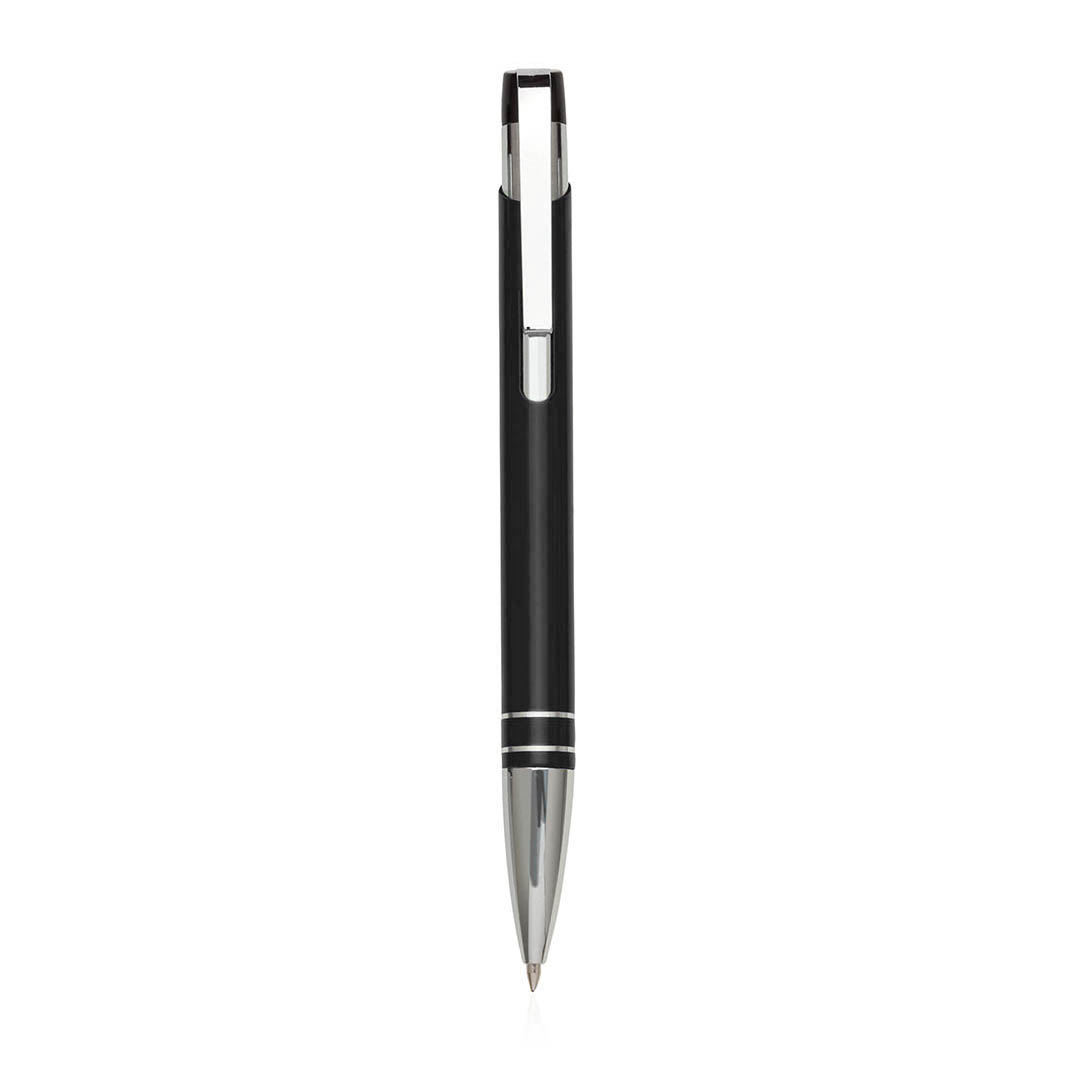 Origineller Druck-Kugelschreiber mit elegantem, zweifarbigem Design. Mit Aluminiumkörper mit Stanzung und glattem Finish in verschiedenen Farben. Gebogener Clip, Ringe und Spitze in Silber. Jumbo-Patrone mit blauer Tinte.