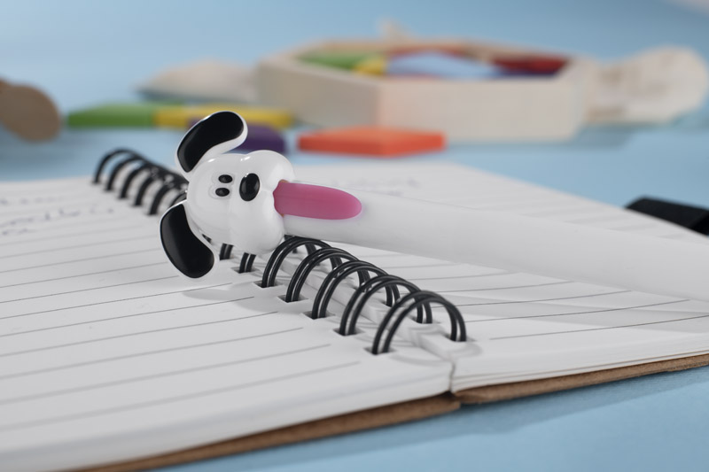 Der GUFI-Stift ist ein witziges Büroutensil mit einer Spitze in Form eines Hundekopfes. Der Öffnungsmechanismus, der durch Ziehen an der Zunge aktiviert wird, macht das Schreiben zu einem angenehmen und ungewöhnlichen Erlebnis. Ausgestattet mit einer Gel-Feder mit einer Schreibstärke von 0,5 mm sorgt er für ein gleichmäßiges und glattes Schriftbild. Die Lackierung sorgt für eine glänzende und glatte Oberfläche. GUFI eignet sich hervorragend als kreatives Werbegeschenk oder als kleines Bürogeschenk.