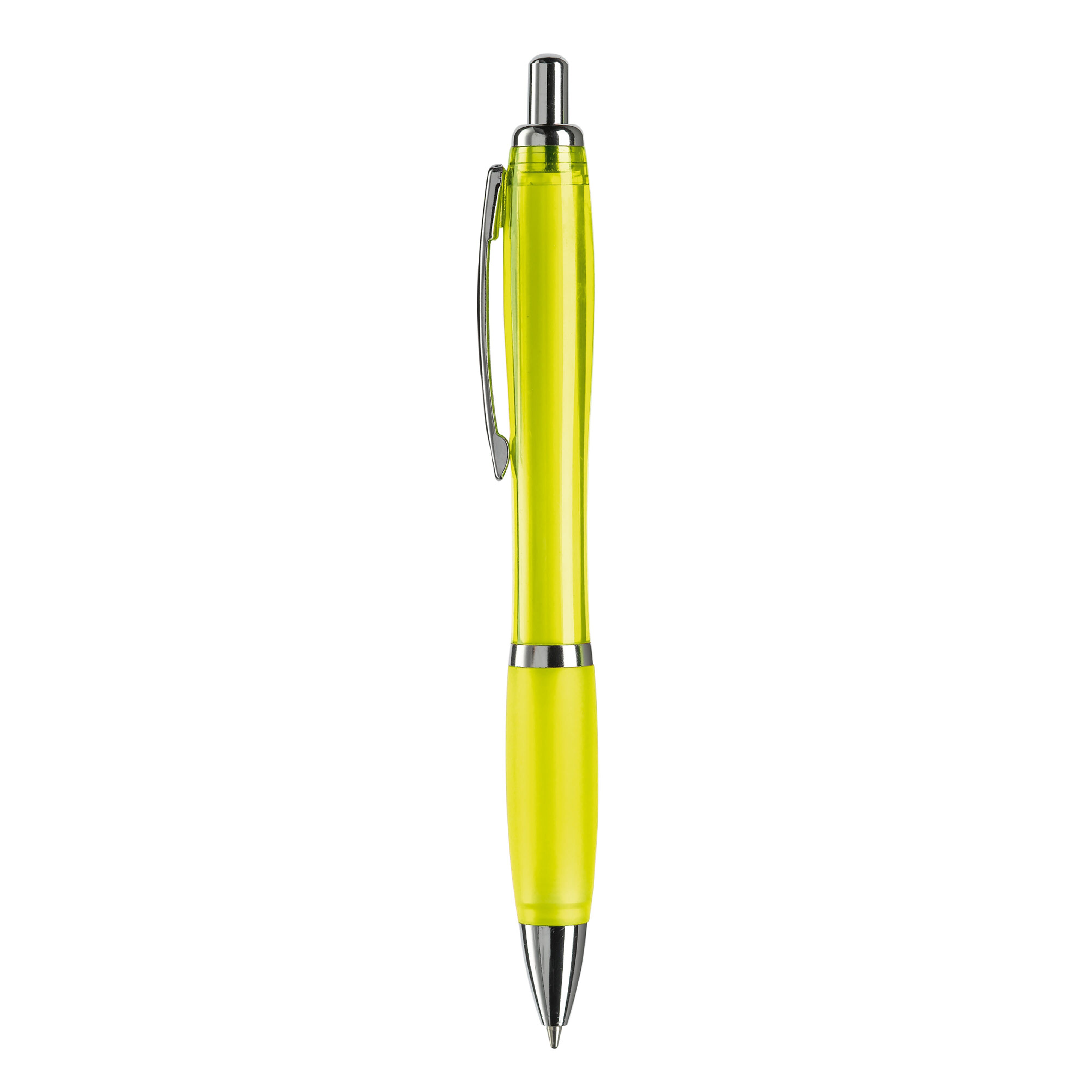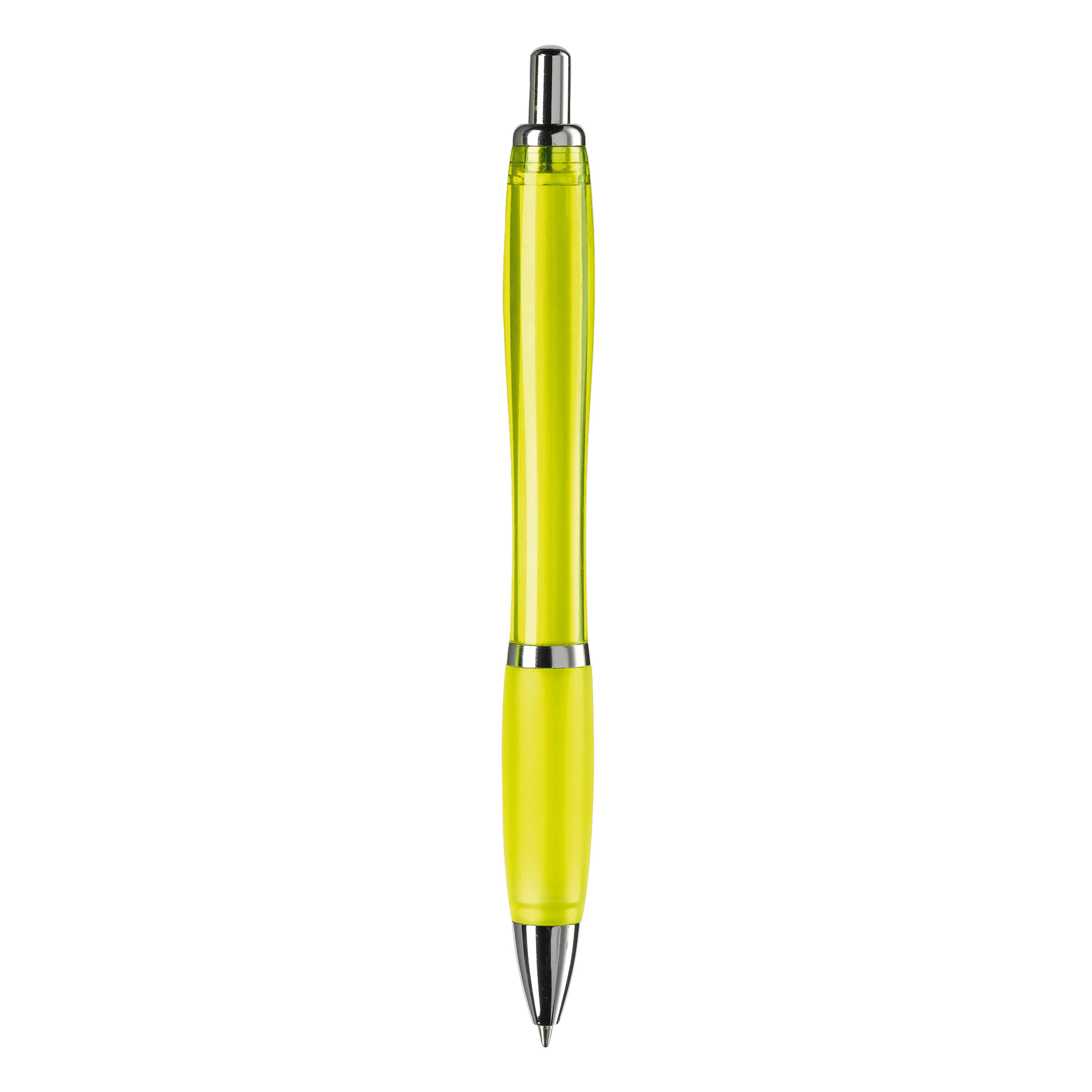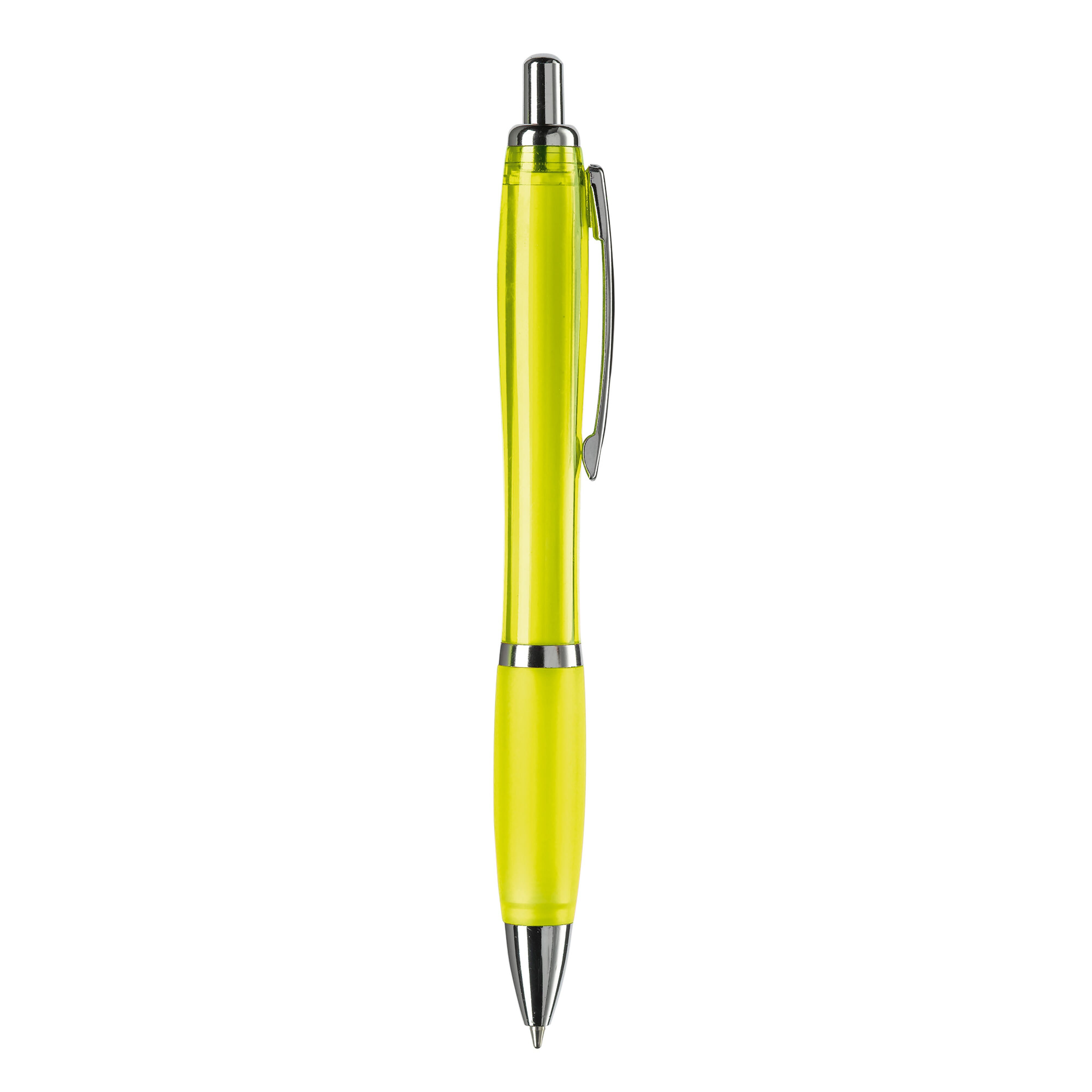 Stilvoller transparenter Kugelschreiber mit Metallclip, Drücker, Zwischenring und Spitze. Blauschreibende Jumbo-Mine mit langer Schreibleistung. Ab 10.000 Stück in weiteren Farben erhältlich. Fragen Sie nach den Möglichkeiten.