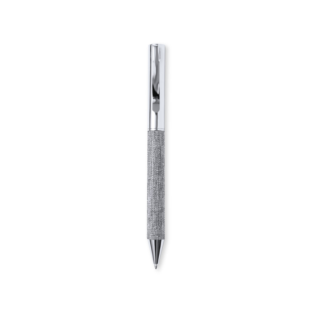 Kugelschreiber aus verchromtem Metall, mit RPET-Polyester beschichtetem Schaft, hergestellt aus recyceltem Kunststoff, um die Wiederverwendung von Kunststoffabfällen zu fördern und die Nachhaltigkeit unseres Planeten zu unterstützen. Eleganter Metallclip und passendes Zubehör, Drehmechanik und blauschreibender Tinte. Mit RPET-Emblem auf dem Schaft und präsentiert in einem Kraft-Etui mit passender Hülle.