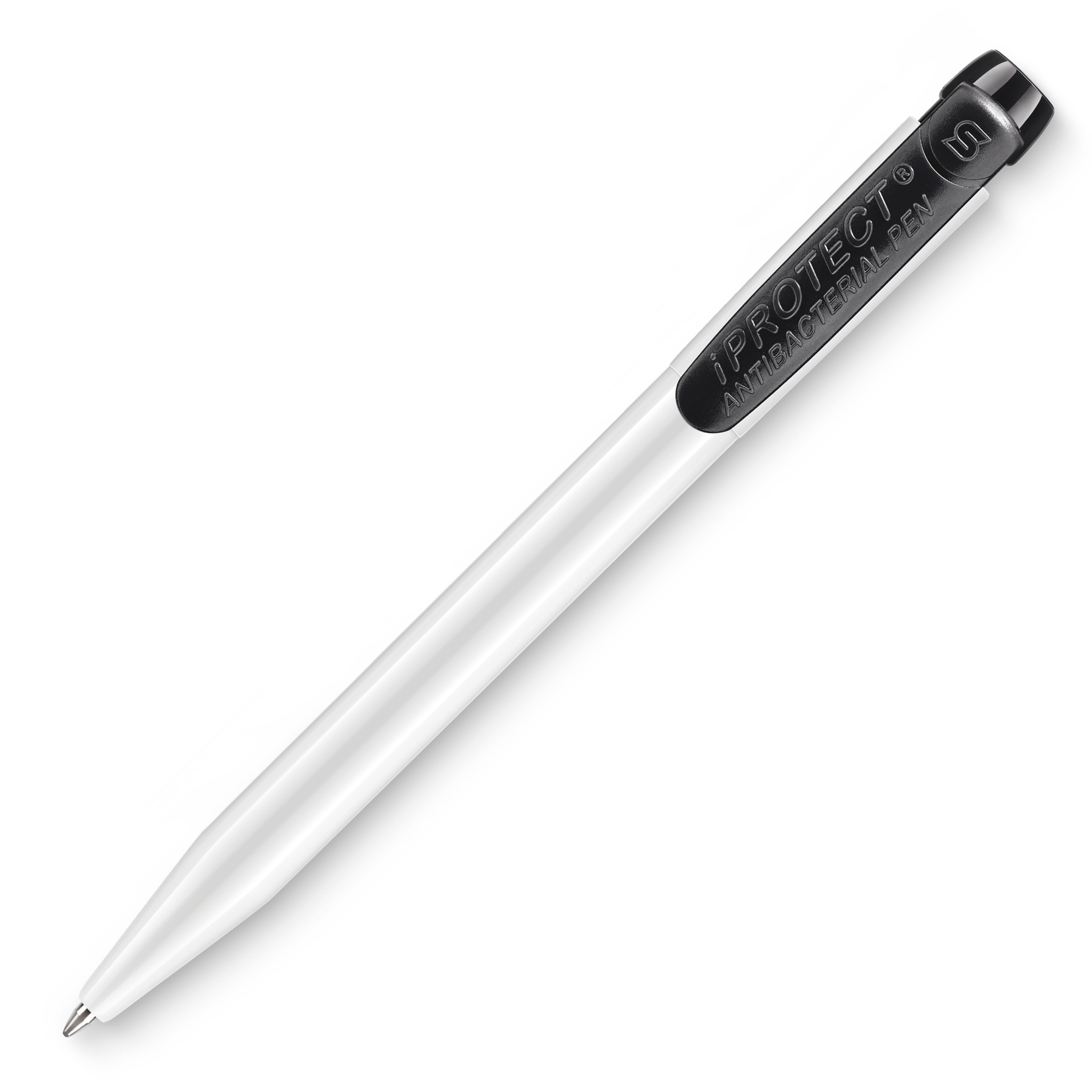 Schreibgeräte sind ideale Träger für Keime sämtlicher Art. Zertifiziert nach ISO 22196. Es ist der Werbestift für Unternehmen der medizinischen und auch hervorragend für Schulen, öffentliche Plätze, Krankenhäuser und Bars. Dieser IProtect-Stift wird mit einem weißem Schaft und einem farbigem Clip geliefert. Ausgestattet mit einer blauschreibenden X20-Mine.