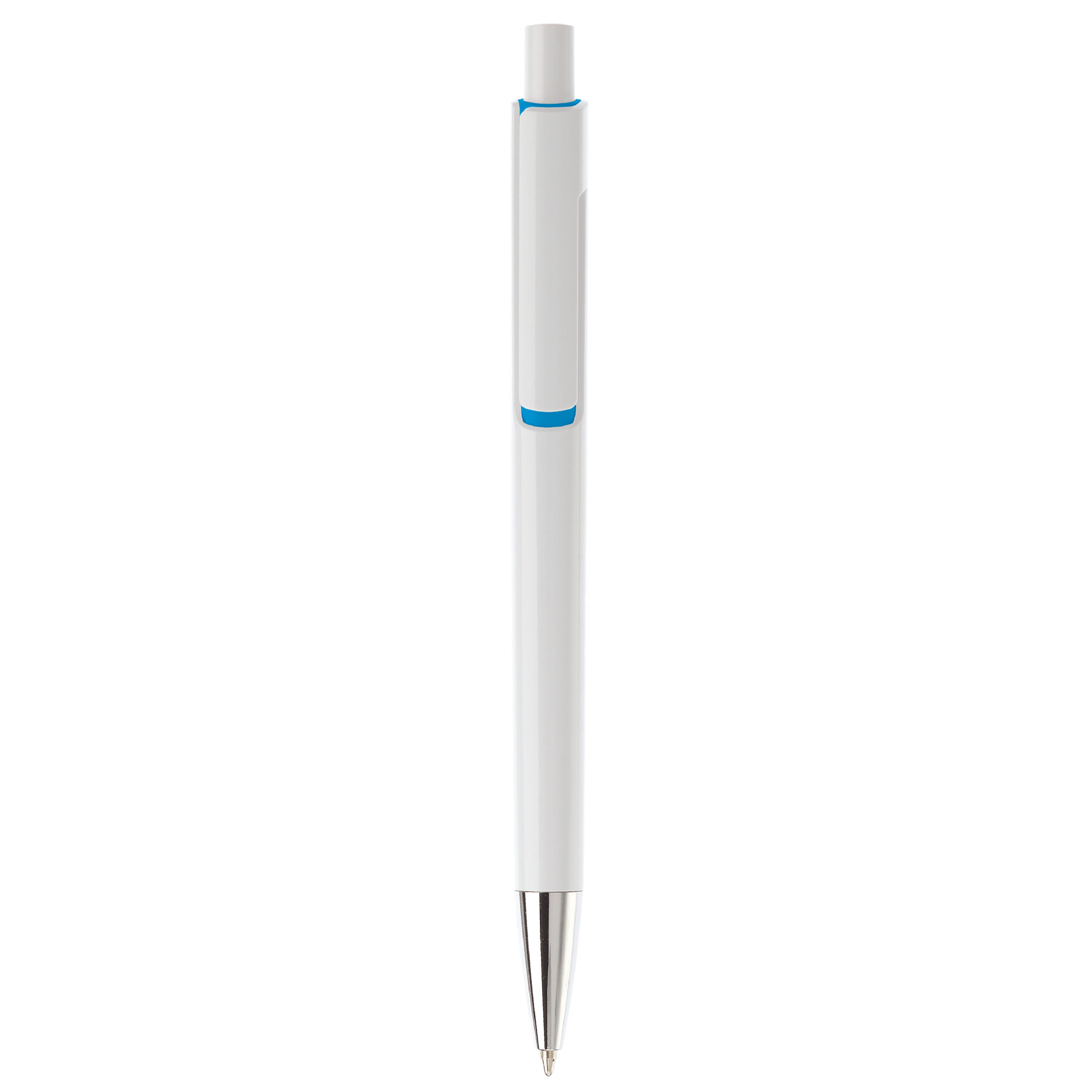 Kugelschreiber mit Drücker, metallisierter Spitze und blauschreibender Jumbo-Mine.