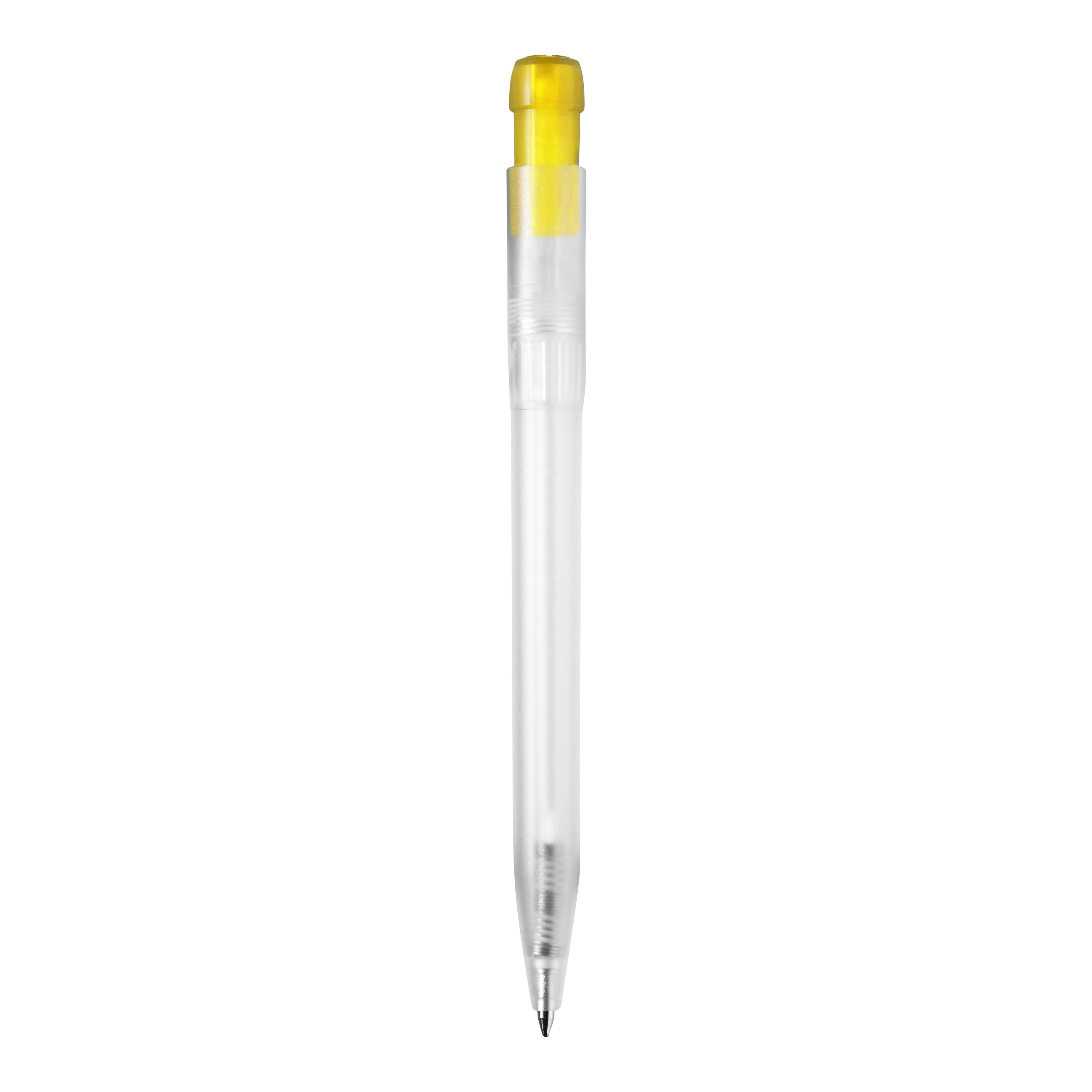 Frosty Ingeo TM Kugelschreiber mit transparentem farbigem Clip. Ab 5.500 Stück sind eigene Farbkombinationen möglich. Hergestellt aus PLA, einem biologisch abbaubarem Material. Dies bedeutet, dass es eine gute und umweltfreundliche Wahl als Werbeartikel ist. Ausgestattet mit einer blau schreibenden X20-Refill-Mine. Der Druckkugelschreiber besteht aus ABS und wird in Europa hergestellt. Ab einer Abnahmemenge von 5.000 Stück sind eigene Farbkombinationen möglich.