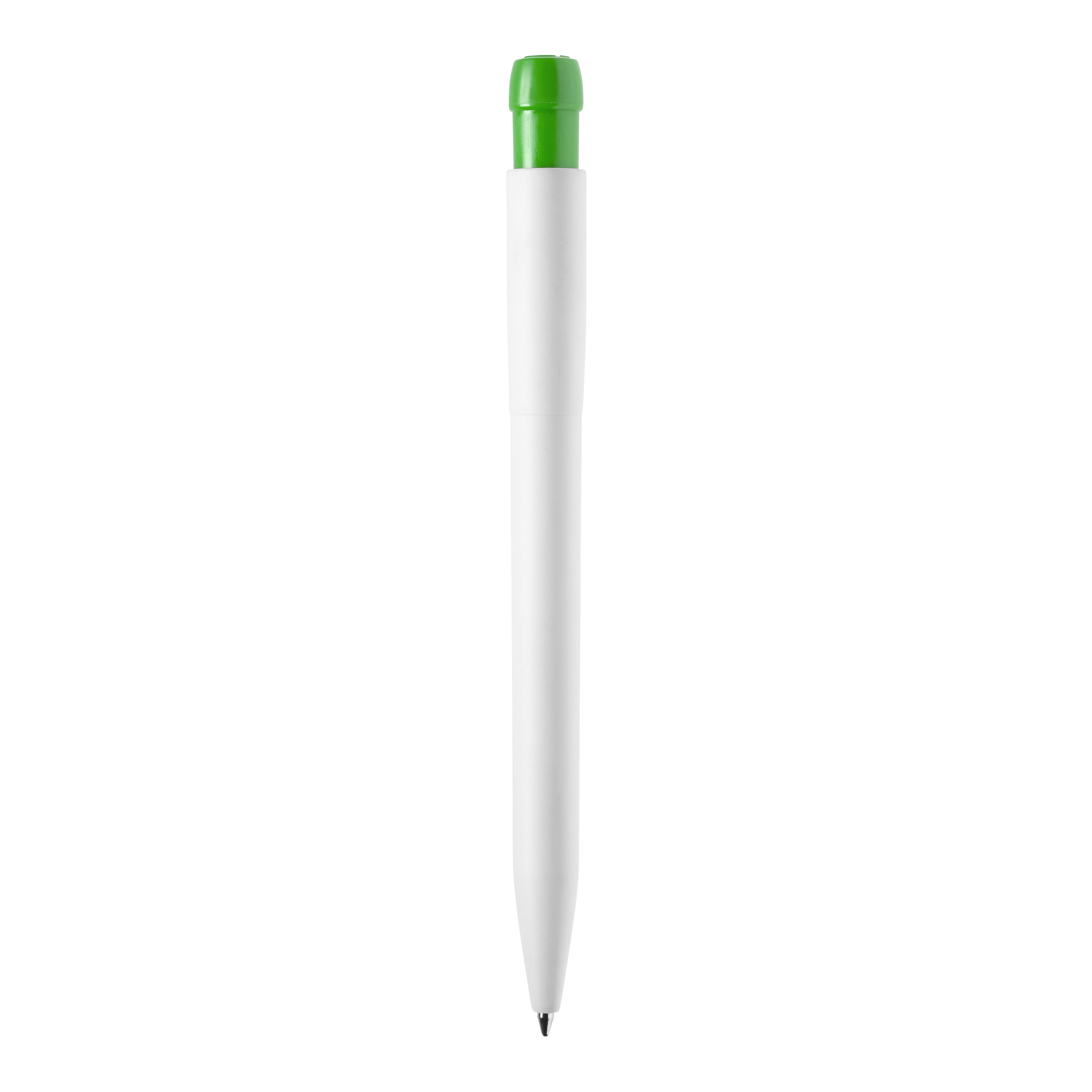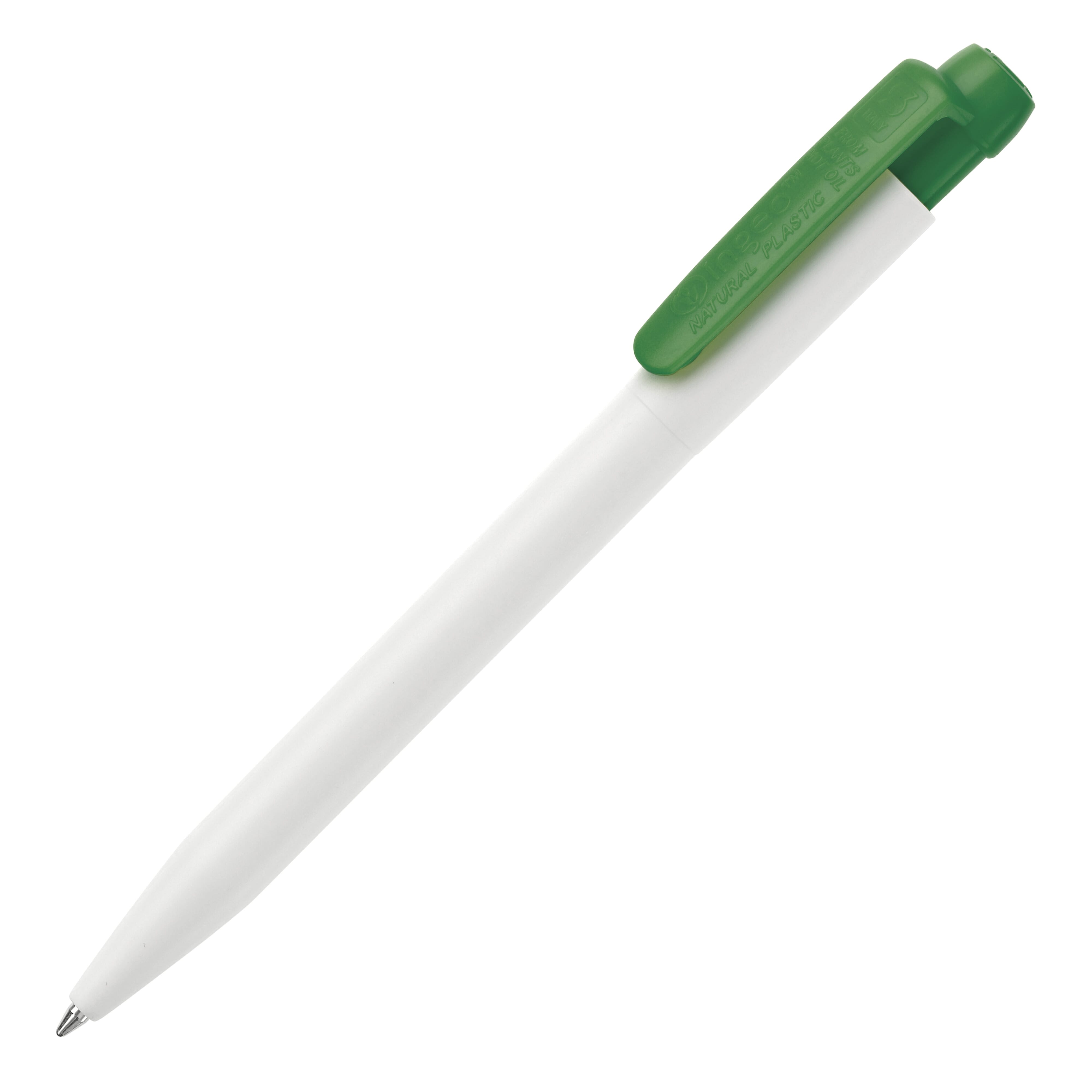 Der weiße Hardcolour Kugelschreiber Ingeo TM-Pen mit farbigem Clip. Hergestellt aus PLA, einem biologisch abbaubarem Material. Dies bedeutet, dass es eine gute und umweltfreundliche Wahl als Werbeartikel ist. Ausgestattet mit einer blau schreibenden X20-Refill-Mine. Der Druckkugelschreiber besteht aus ABS und wird in Europa hergestellt. Ab einer Abnahmemenge von 5.000 Stück sind eigene Farbkombinationen möglich.
