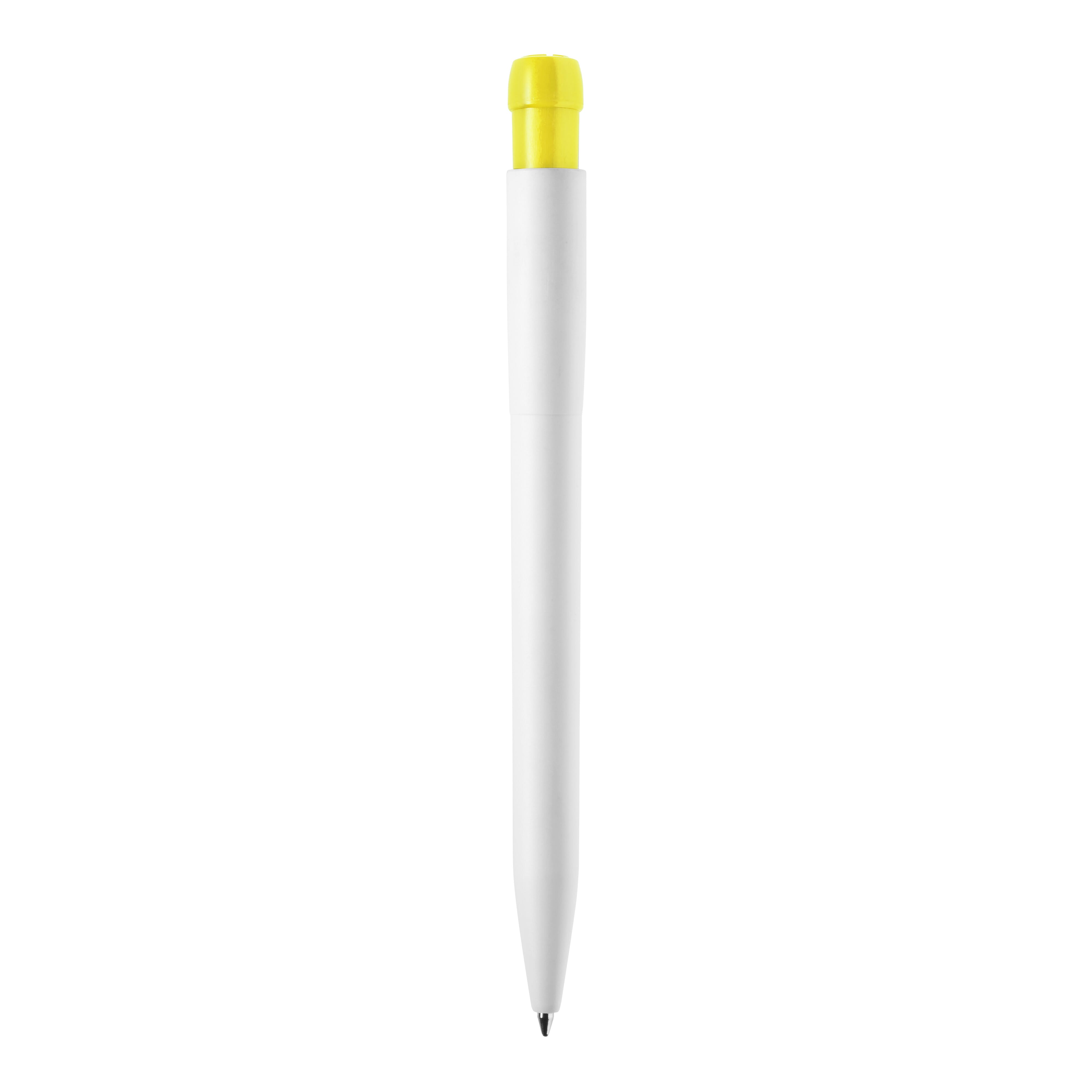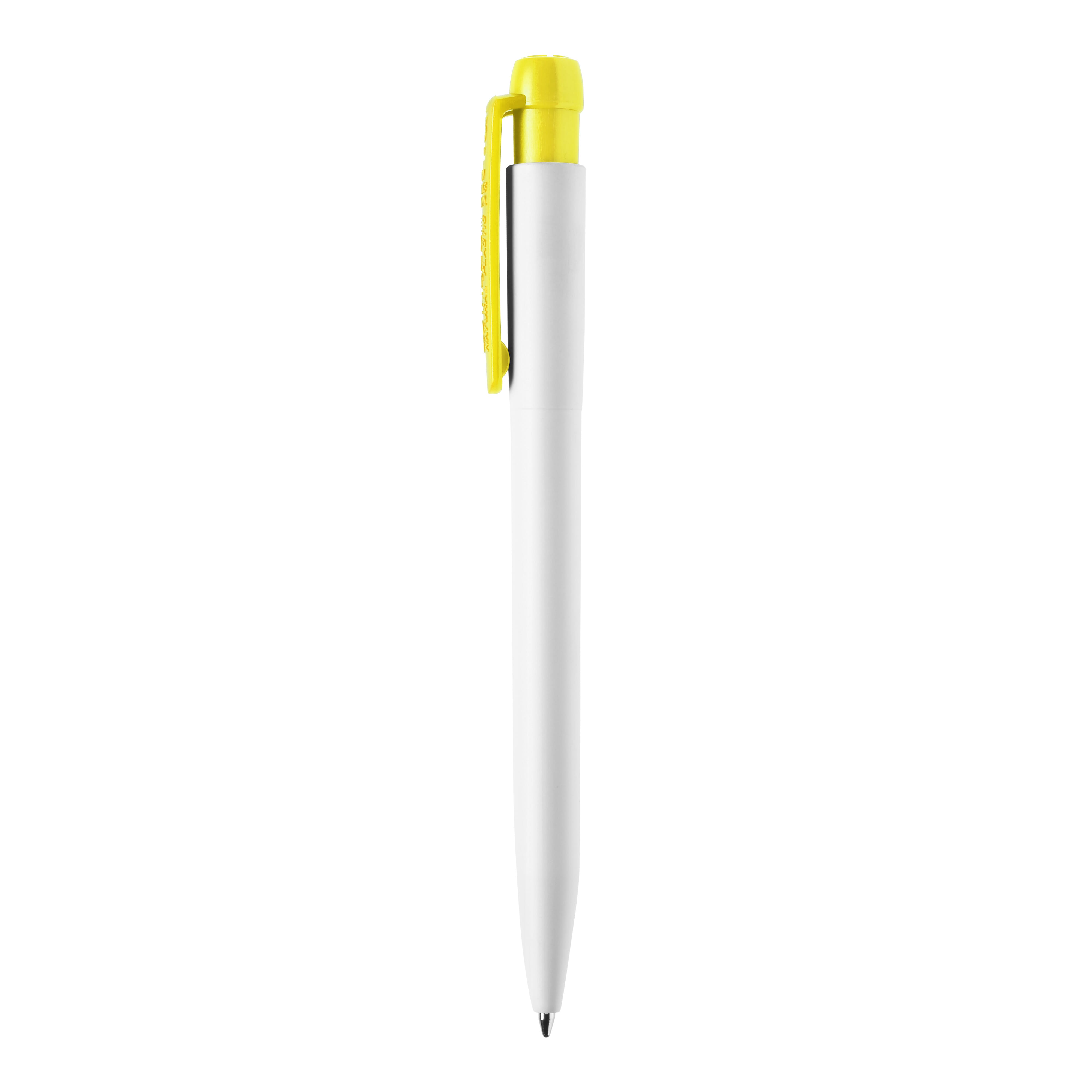 Der weiße Hardcolour Kugelschreiber Ingeo TM-Pen mit farbigem Clip. Hergestellt aus PLA, einem biologisch abbaubarem Material. Dies bedeutet, dass es eine gute und umweltfreundliche Wahl als Werbeartikel ist. Ausgestattet mit einer blau schreibenden X20-Refill-Mine. Der Druckkugelschreiber besteht aus ABS und wird in Europa hergestellt. Ab einer Abnahmemenge von 5.000 Stück sind eigene Farbkombinationen möglich.