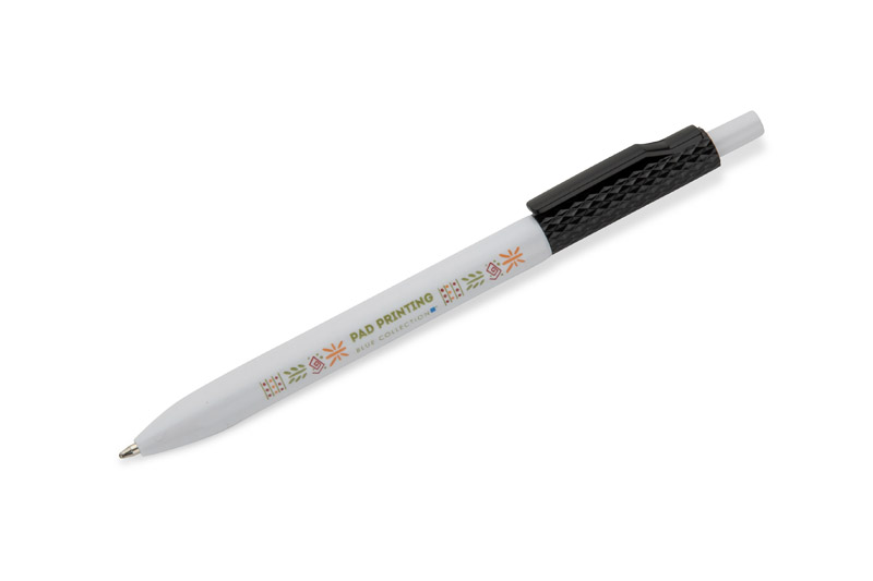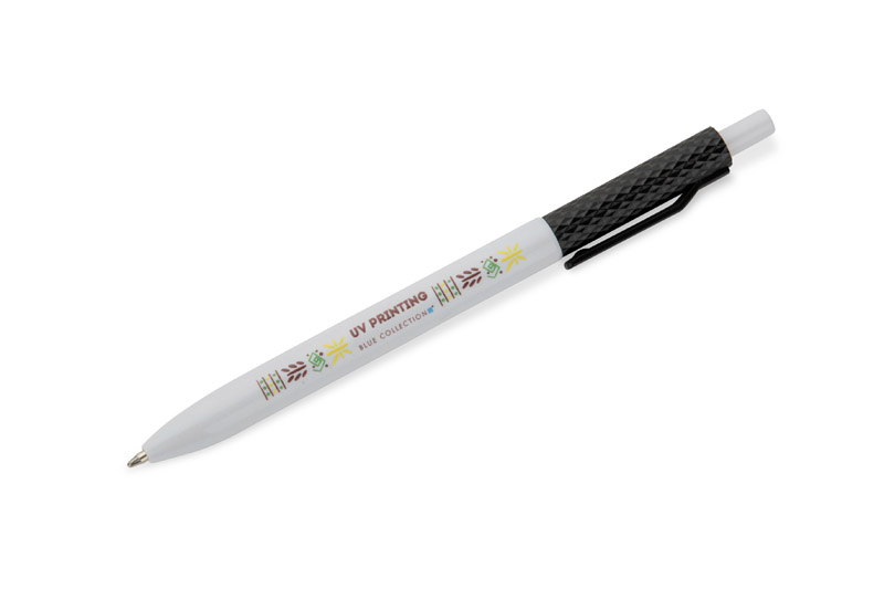 Der Kugelschreiber KARBI ist aus Kunststoff gefertigt und mit einem glänzenden Lack überzogen. Sein charakteristisches Element ist die geriffelte Struktur des oberen Teils des Schaftes und des Clips in der gleichen Farbe, die ein kohärentes Ganzes bilden. Der automatische Mechanismus sorgt für eine bequeme Handhabung und die Mine vom Typ X20 mit einer Schreibstärke von 1,0 mm garantiert ein flüssiges Schreiben. Das schlichte und moderne Design macht KARBI zu einem praktischen Werbegeschenk, das sich ideal für den täglichen Gebrauch und für das Logo-Branding eignet.