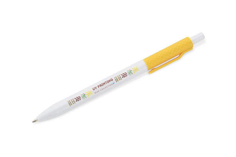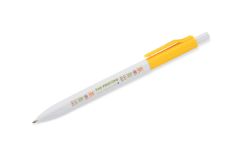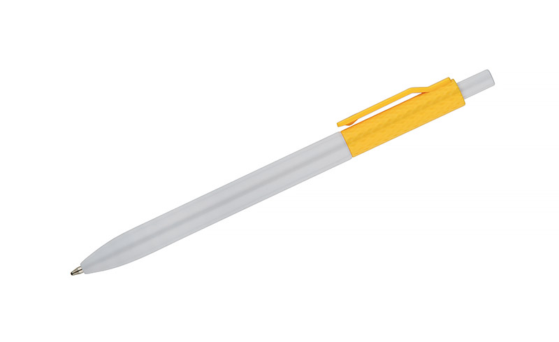 Der Kugelschreiber KARBI ist aus Kunststoff gefertigt und mit einem glänzenden Lack überzogen. Sein charakteristisches Element ist die geriffelte Struktur des oberen Teils des Schaftes und des Clips in der gleichen Farbe, die ein kohärentes Ganzes bilden. Der automatische Mechanismus sorgt für eine bequeme Handhabung und die Mine vom Typ X20 mit einer Schreibstärke von 1,0 mm garantiert ein flüssiges Schreiben. Das schlichte und moderne Design macht KARBI zu einem praktischen Werbegeschenk, das sich ideal für den täglichen Gebrauch und für das Logo-Branding eignet.
