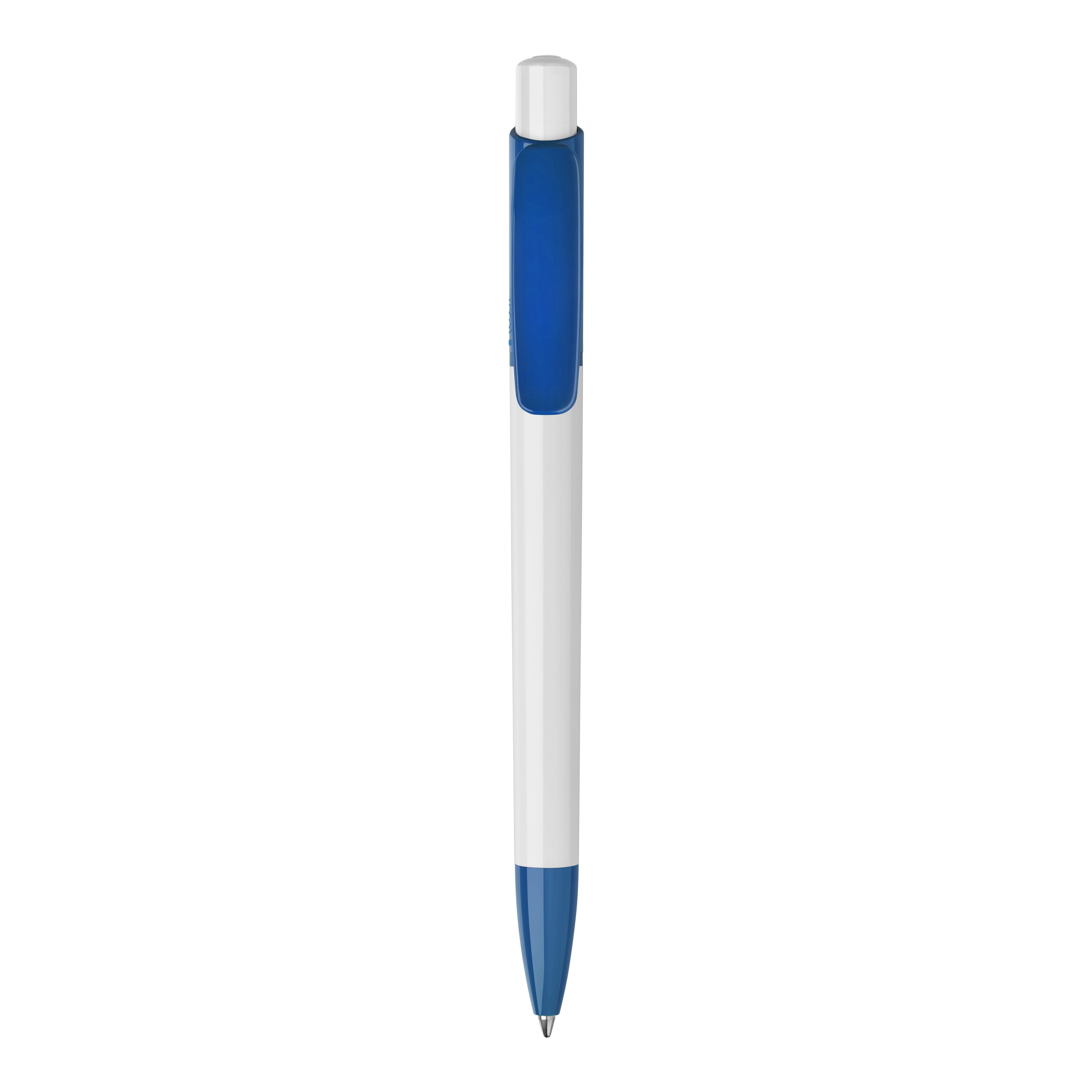Der Hardcolour Kugelschreiber Kamal hat eine große Druckfläche auf dem Clip und dem Schaft. Eine ansprechende Kombination aus weißem Schaft und weißem Drücker sowie einem farbigen Clip. Druckkugelschreiber ausgestattet mit einer blau schreibenden X20-Refill-Mine. Der Stift besteht aus ABS-Kunststoff und wird in Europa hergestellt.