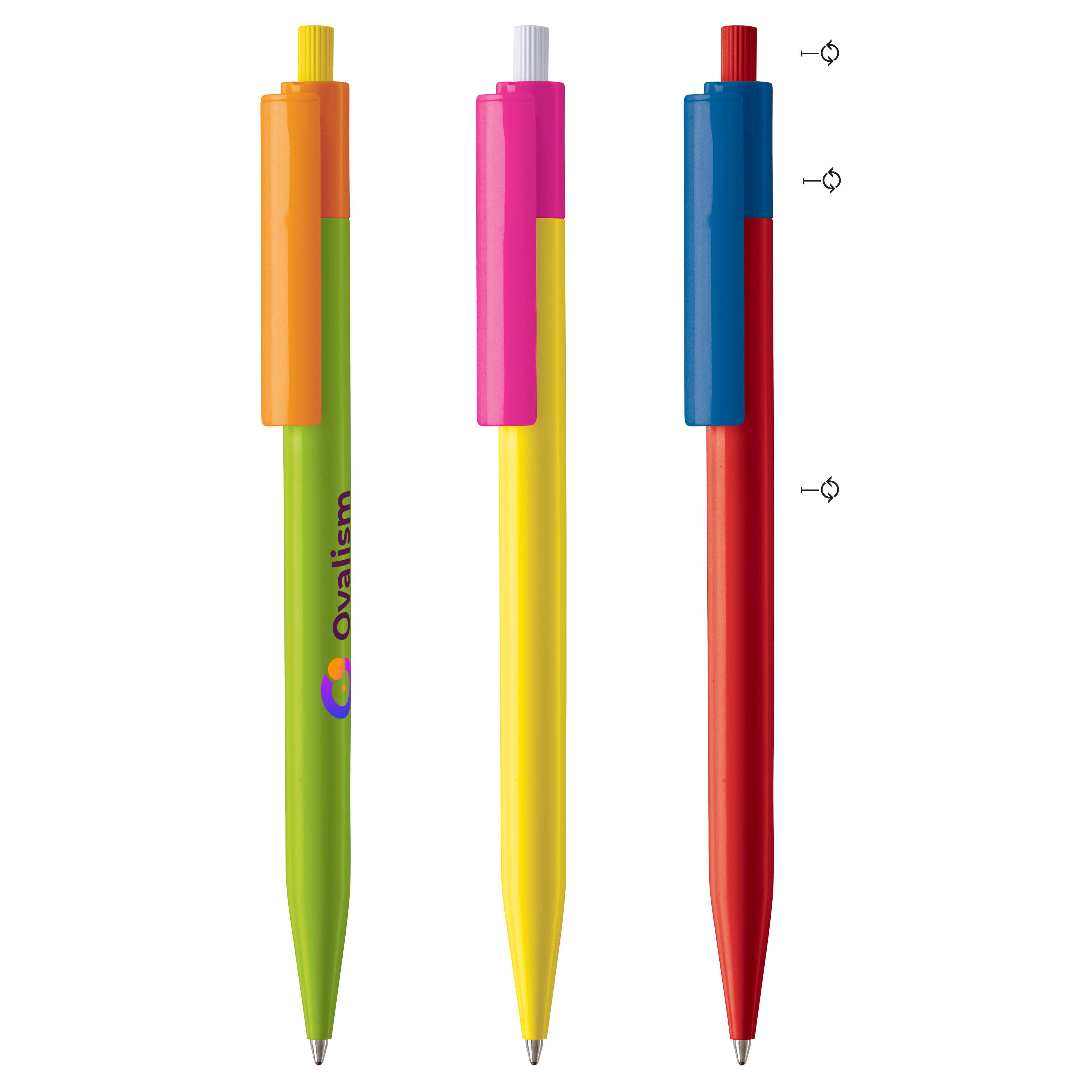 Toppoint Kugelschreiber Design. Made in Germany. Bei dem "Kuma Combi" sind die Farben jedes einzelnen Teils des Stiftes kombinierbar und er hat eine X20-Mine mit einer Schreibleistung von 2,5km. Schreibfarbe blau, rot, schwarz oder grün wählbar.