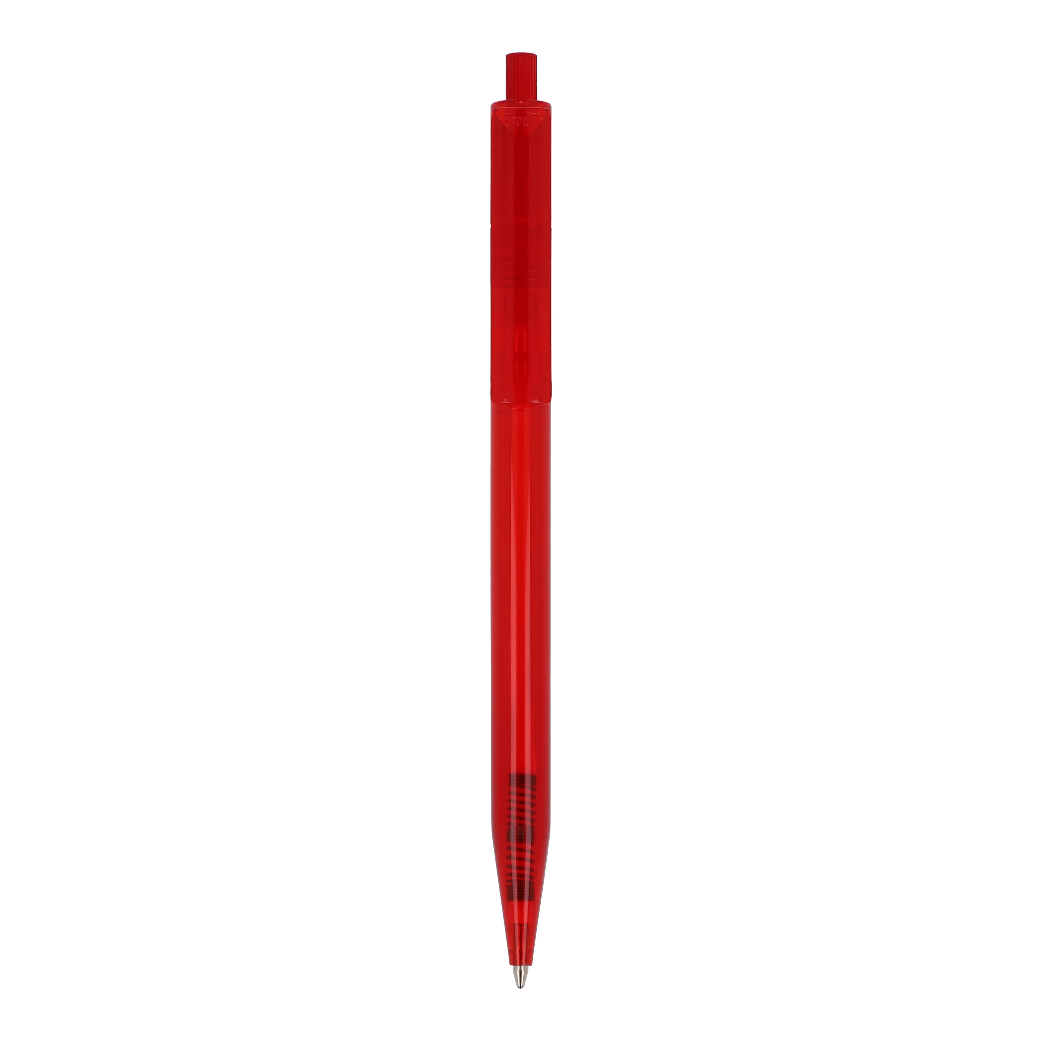 Toppoint Kugelschreiber Design. Made in Germany. Transparentes Kunststoffgehäuse inkl. einer X20-Mine mit einer Schreibleistung von 2,5km. Minenfarbe: blau.