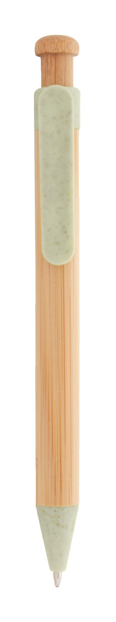 Bambus-Kugelschreiber mit Teilen aus ökologischem Weizenstrohkunststoff, blauschreibend.
