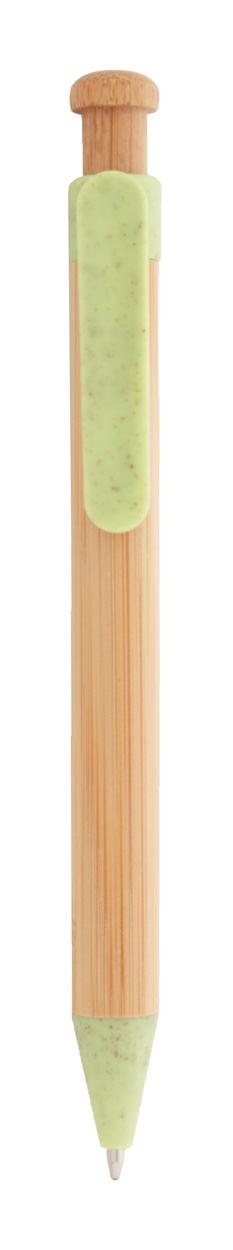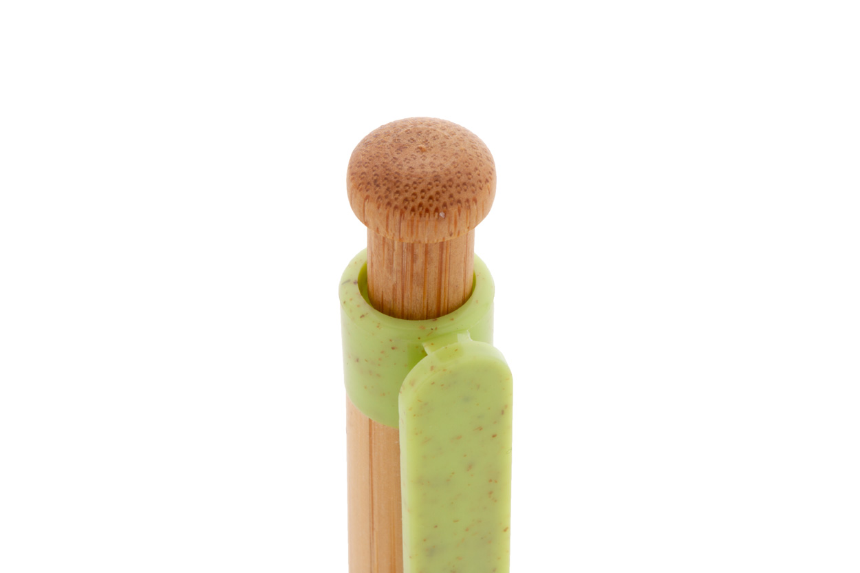 Bambus-Kugelschreiber mit Teilen aus ökologischem Weizenstrohkunststoff, blauschreibend.